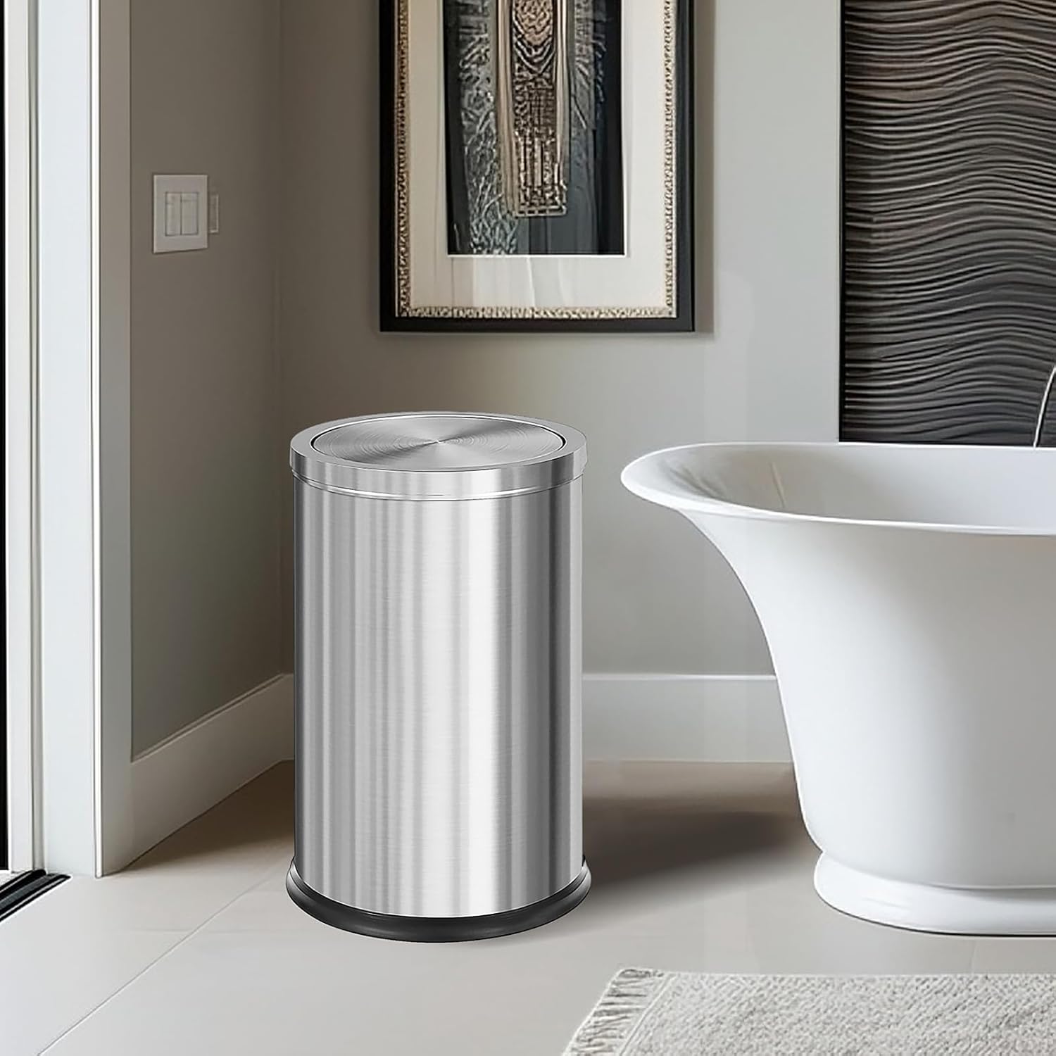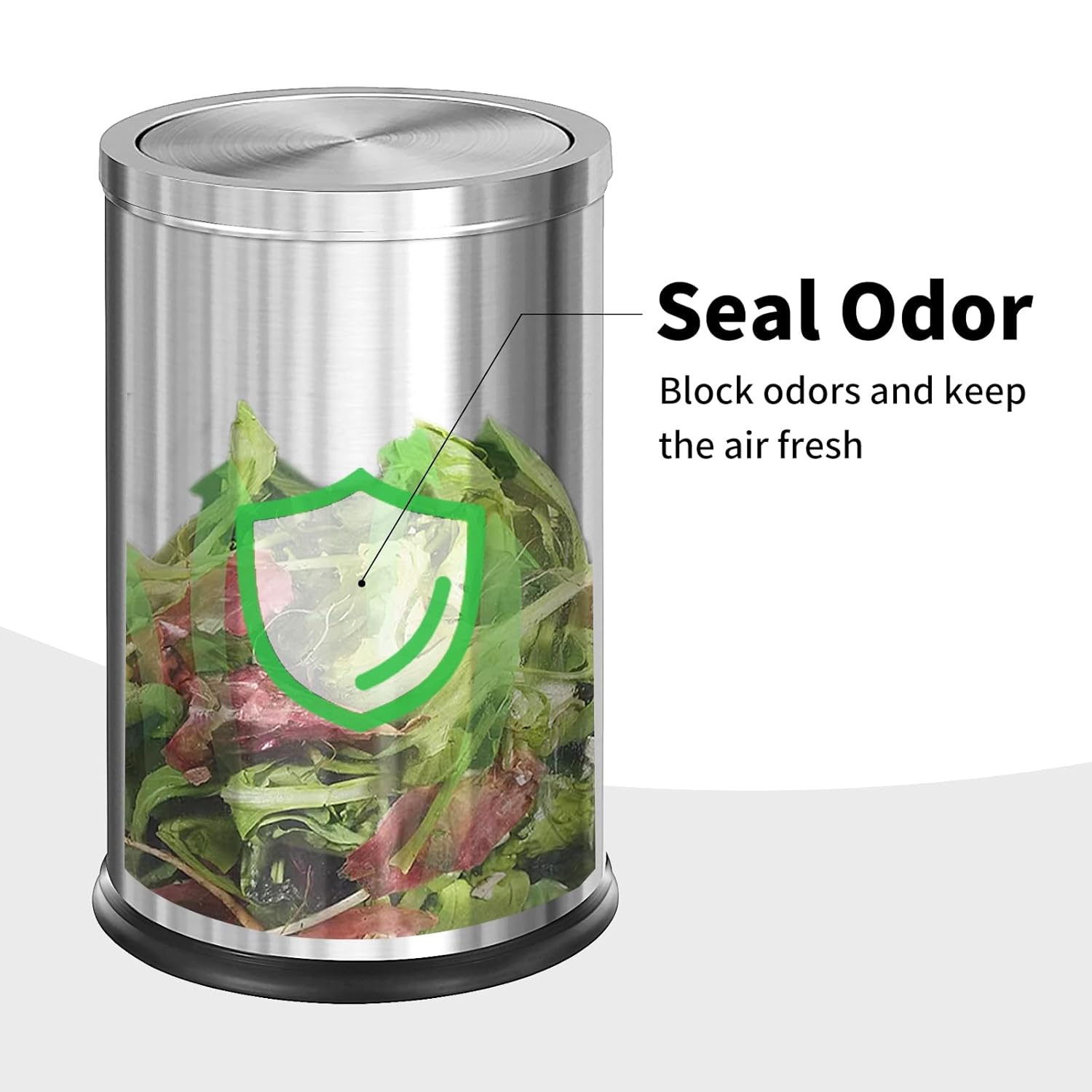 - 【Garbage bag Invisable】our this trash bin build in an inner ring which you can set on top of the bag at the opening, then you fold the edges of your garbage bag over ,so there’s no bag edges showing around it,it looks more neat and beauty.