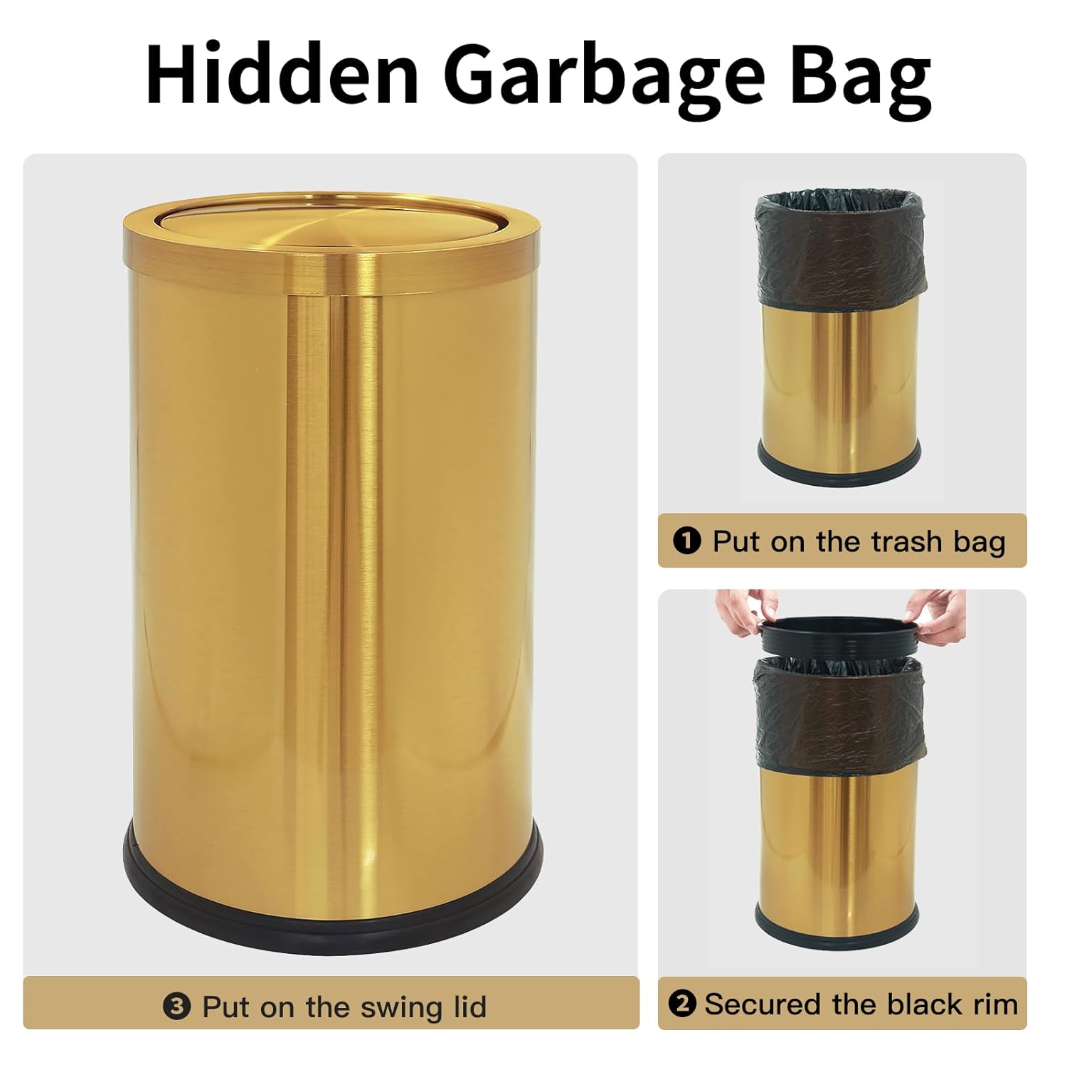 - 【Exquisite Technology】This gold garbage can adopted with wire drawing technology, which makes its appearance more noble and elegant. It is fingerprints-proof and Rust-proof, easy to clean and maintain, keeping it clean and beautiful.