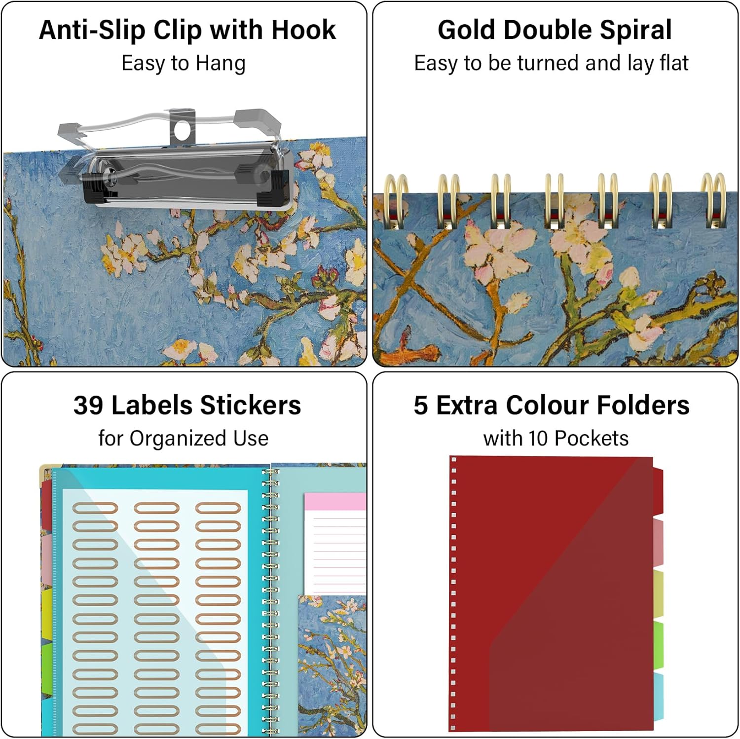 - 【Easy to Categorize】Clipboard notebook comes with 5 extra Plastic Color Folders with 10 pockets fit in all standard US letter size sheets. 39 self-adhesive file folder labels, making it easy to categorize. An elastic band keeps your files securely in place and also can be used as a bookmark