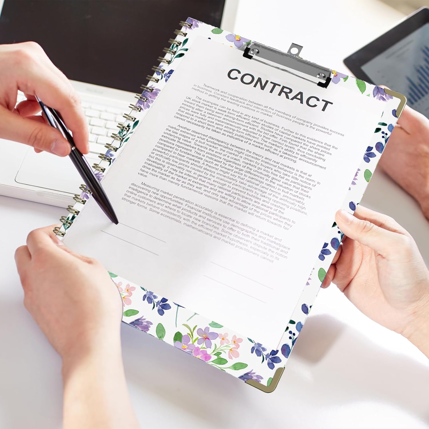 - 【Substantial Quality】Our clipboard folder featuring stunning full-color printing with a glossy lamination finish. Use sturdy metal clip with gripping. Twin wire spiral allows to flip the cover, no creases and cracks to offer durability. Clipboard with storage’s four corners are reinforced with metal, enhancing the clipboard's resistance to wear and tear. The removable notepad won't bleed ink