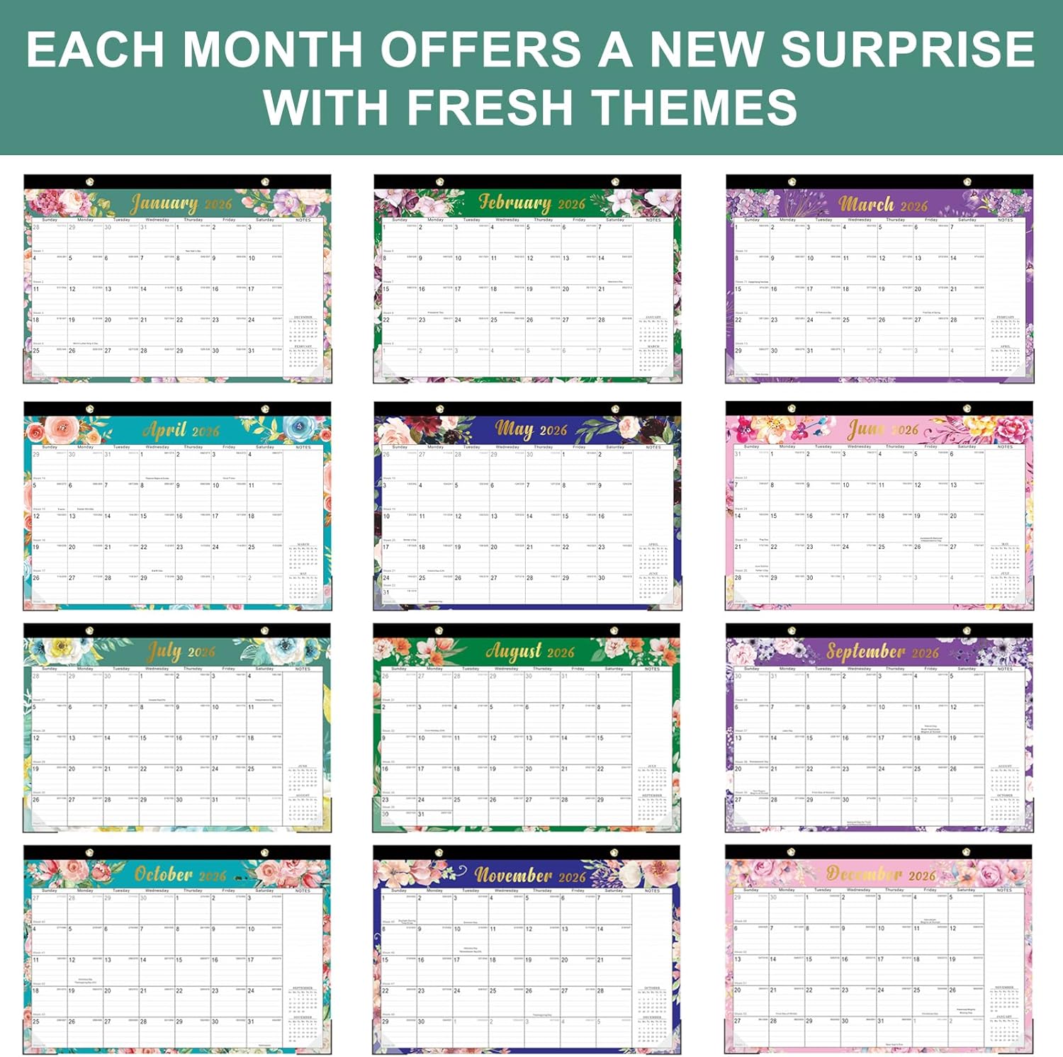 - DAILY ORGANIZATION: Each month has a different design, Each day block provides sufficient space for appointments, tasks, and important reminders