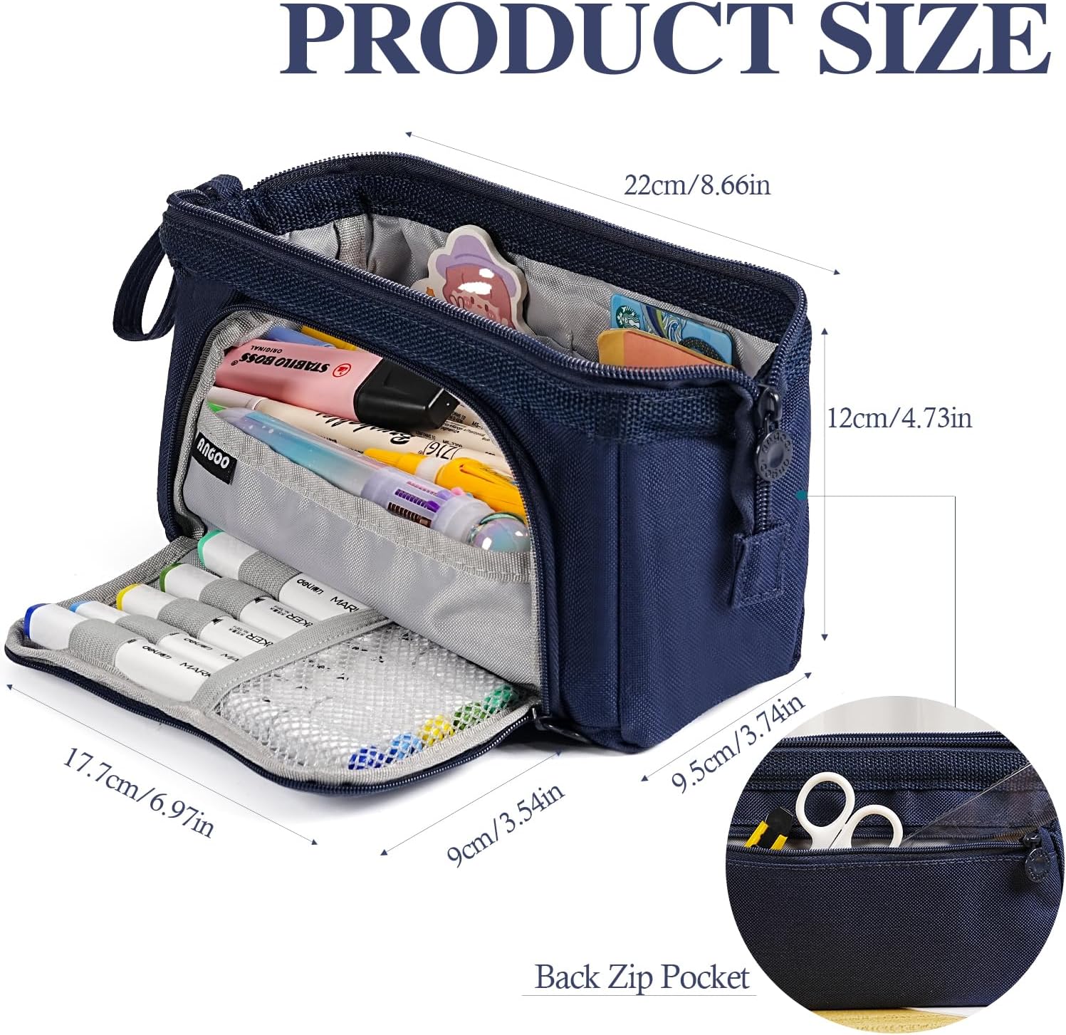 - Large Capacity Pencil Case: The pen bag measures 8.7 x 3.7 x 4.7 inches. With multiple separate compartments, this pencil bag offers plenty of space to efficiently organize pens, pencils, markers, scissors, sticky notes, calculator, cards and other stationery or essentials.