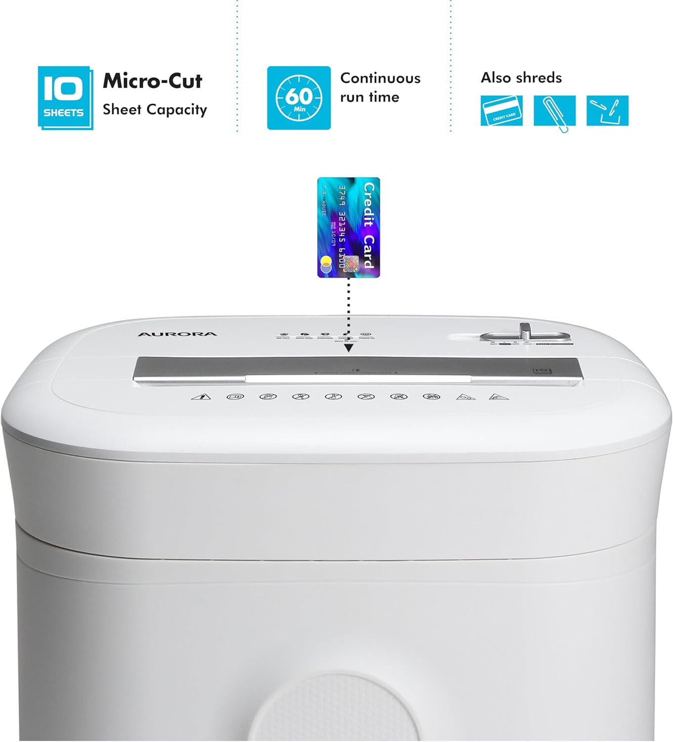 Aurora High-Security 10-Sheet Micro-Cut Paper and Credit Card Shredder with 6 Gallon Pullout Basket / 60 Mins Running Time/Security Level P-5