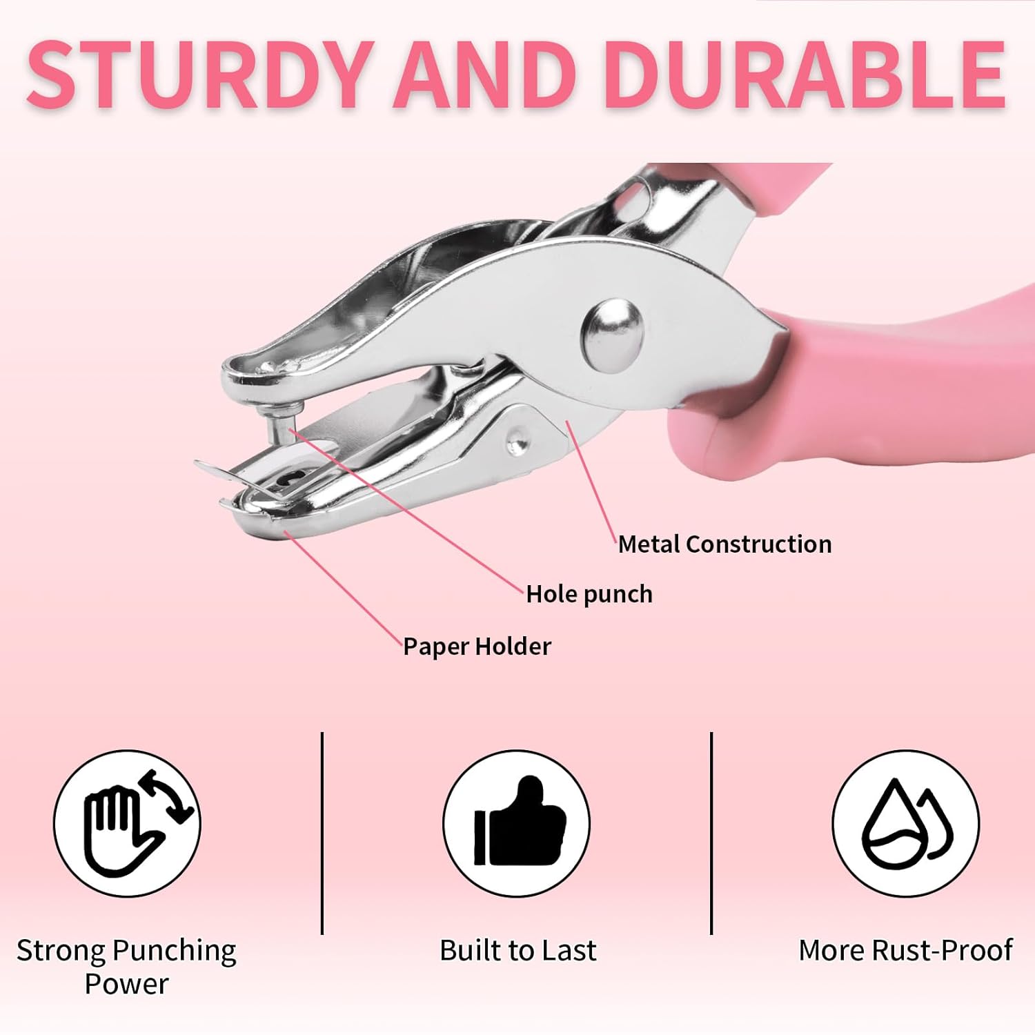 - Built to Last, Punch with Power: Crafted from premium metal, this single-hole punch is ultra-durable, corrosion-resistant, and not bends or breaks. Effortlessly punches 6-10 sheets at once, delivering flawless performance every time—even after countless uses