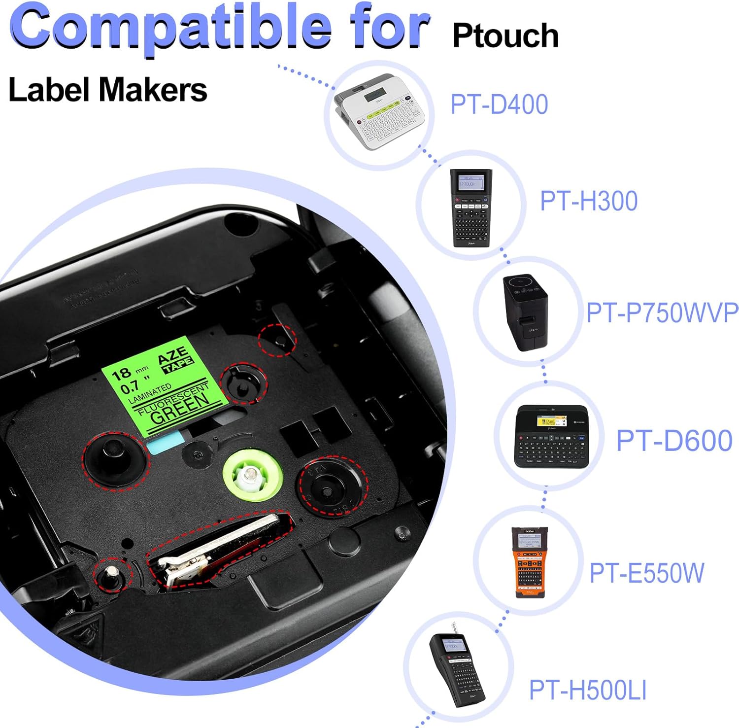 2 Pack Compatible for Ptouch TZe-D41 TZ-D41 TZe TZ Label Tape 18mm 0.7'' Laminated Black on Fluo Green Tape Label Maker Tape for PT-D600 PT-D610BT PT-D600VP PT-P710BT PT-P750W
