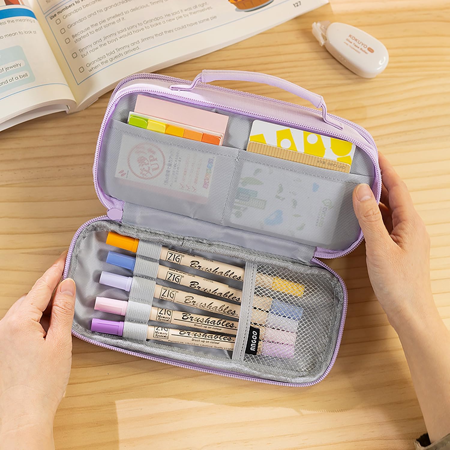 - Superior Material and Portable: The pen pouch is made of premium quality polyester with fine workmanship and details, sturdy and easy to clean, pencil case with smooth zipper for easy opening and closing. Comfortable Thickened handle allows you to carry it easily to any occasion.