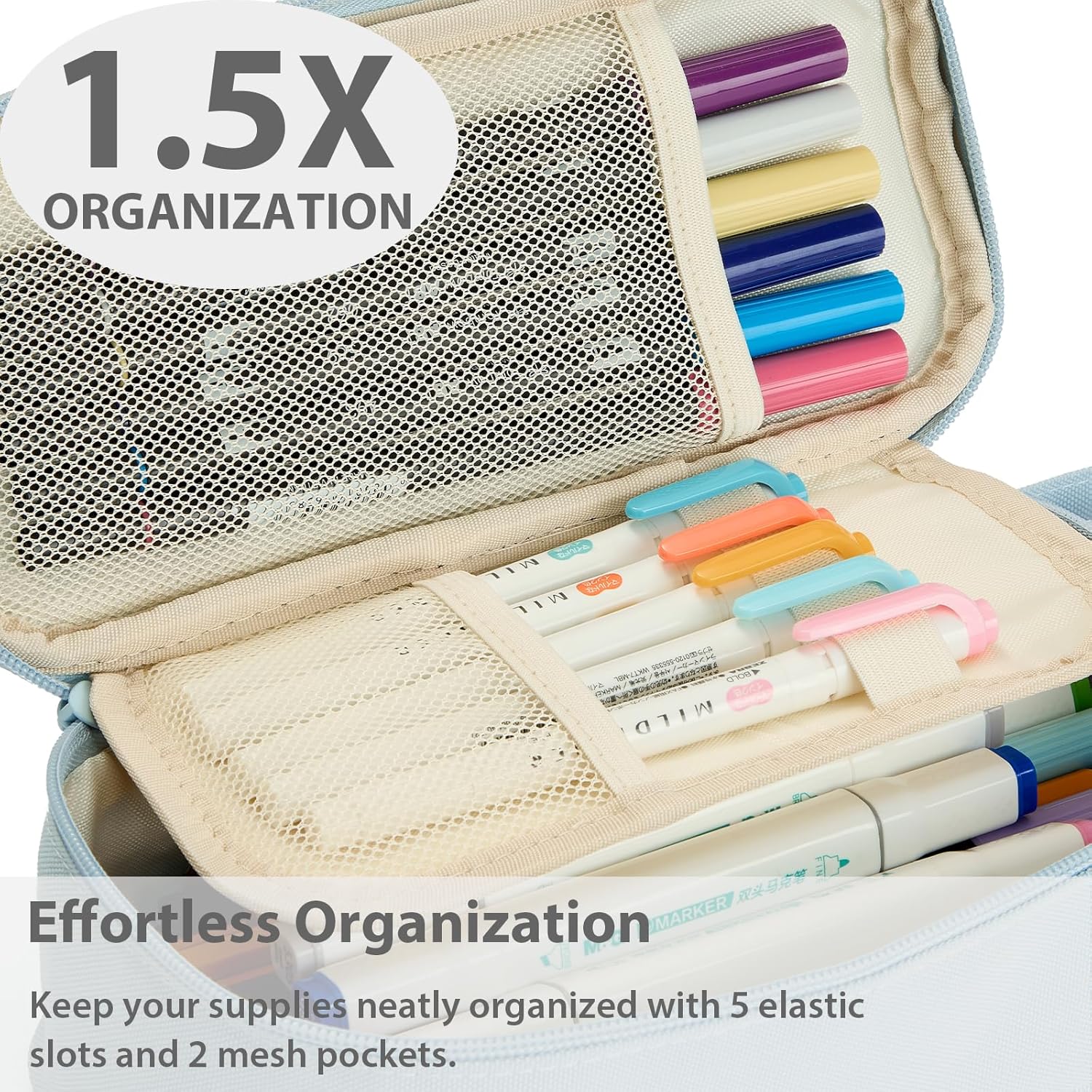 Pencil Case Pouch Box Bag School Supplies Girls Boys Kids, Cute Preppy Stuff Large Big Capacity Aesthetic Pen Organizer, Back to College Stationary, Powder Blue, Standard Stlye, 1800ml