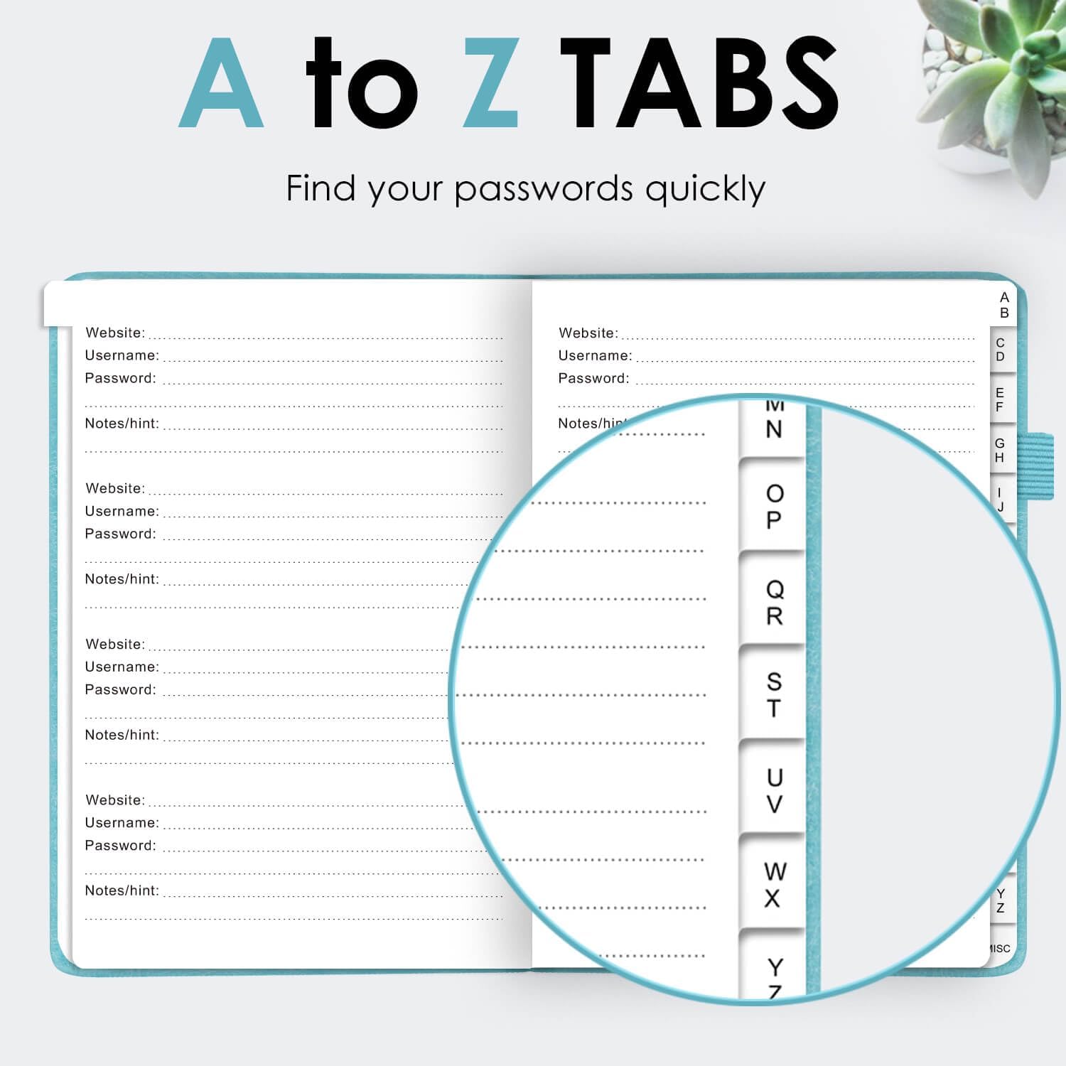 - ALPHABETICAL A-Z TABS FOR QUICK ACCESS: Alphabetical tabs design allows you to store your passwords alphabetically so you can find what you want faster, no more annoying searches!