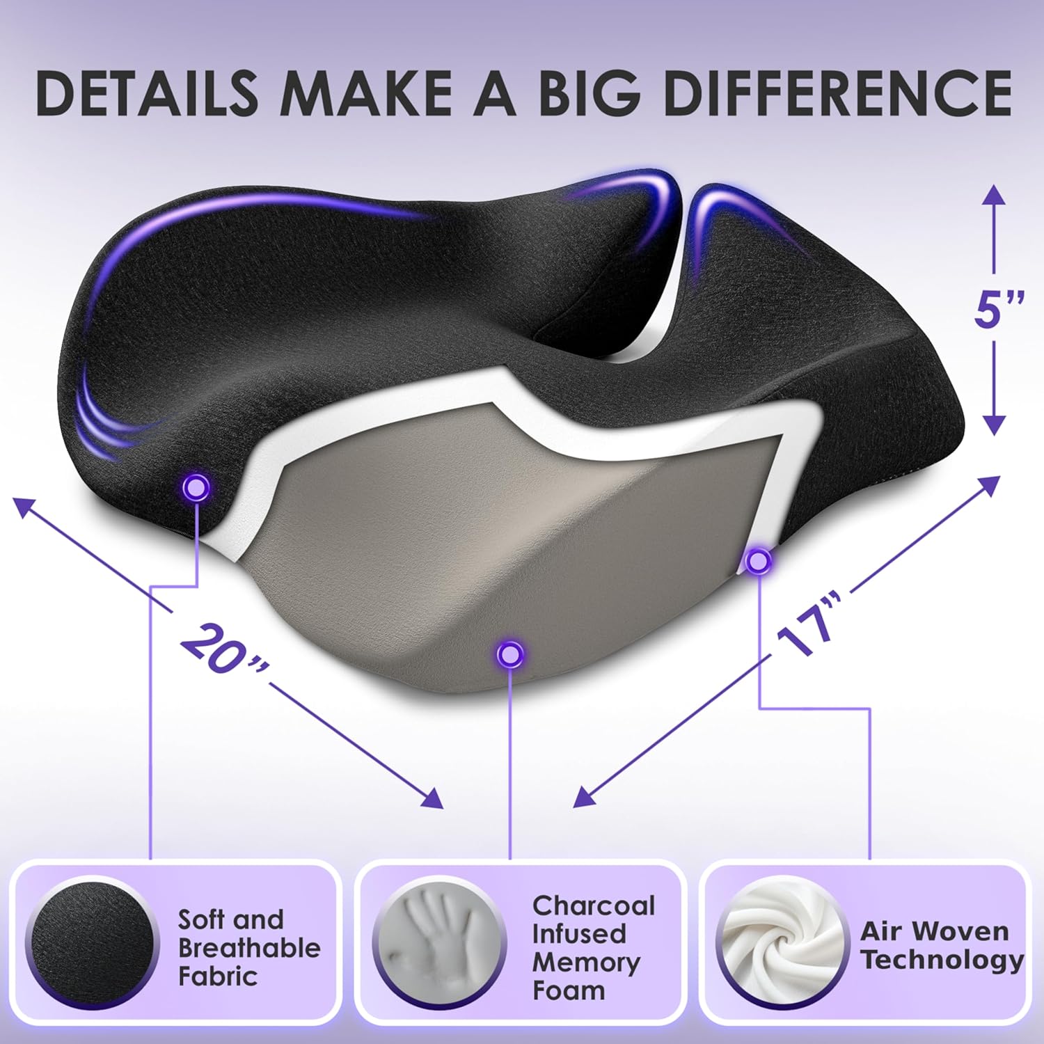 - Special Feature : 15% Larger and Wider for more Comfort and Support. With Extra Seat Cover, Car Seat Cushion, Orthopedic Cushion for Sciatica, Carrying Handle, Washable and Breathable Covers, Removable Cover cushion for office chair, Portable memory foam car seat cushion, chair cushion for office chair, office desk accessories, cushion for chair 15% Larger and Wider for more Comfort and Support. With Extra Seat Cover, Car Seat Cushion, Orthopedic Cushion for Sciatica, Carrying Handle, Washable and Bre… See more