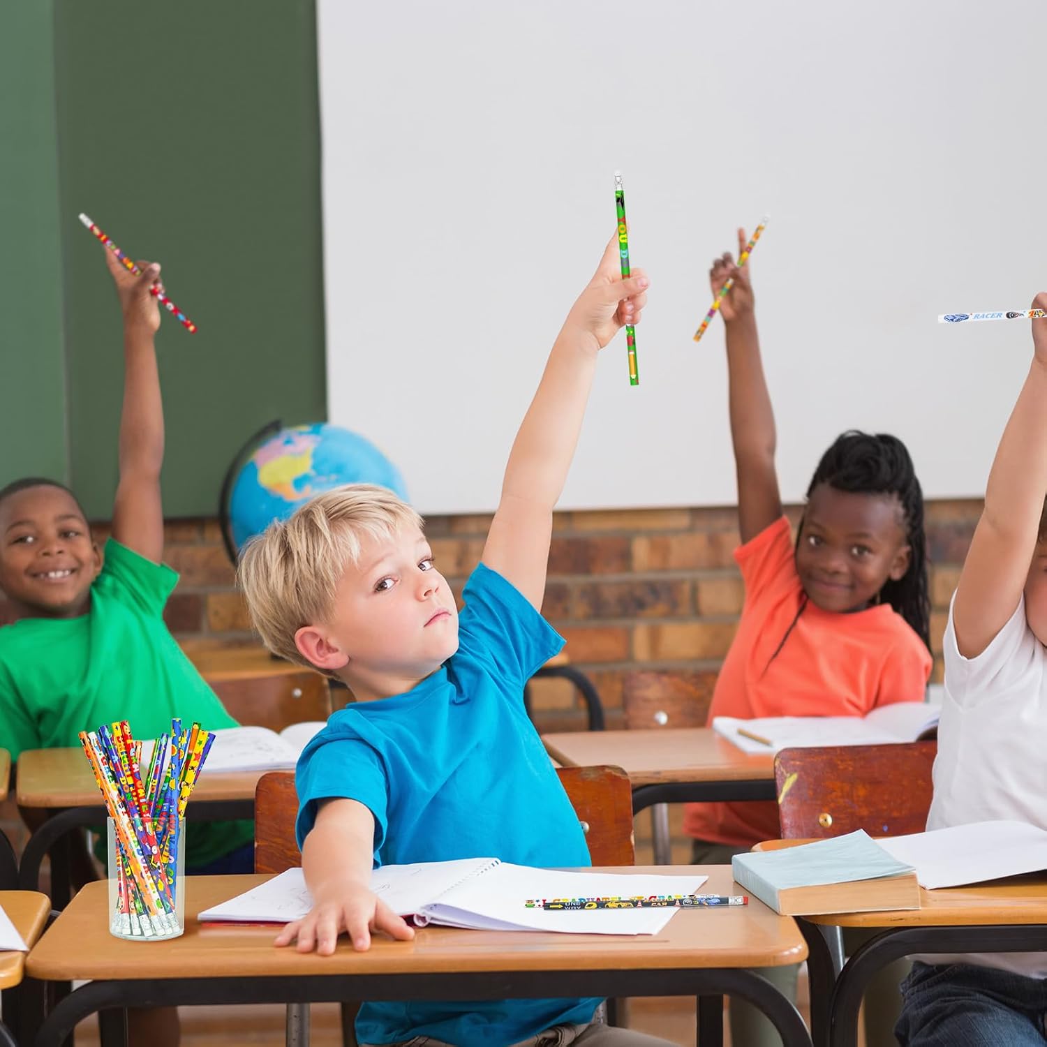 - Cute & Fun Designs:Each pencil is decorated with bright, cheerful patterns, including graduation caps, stars, and fun messages that inspire young learners. Kids will love using these pencils for drawing, writing, and school activities