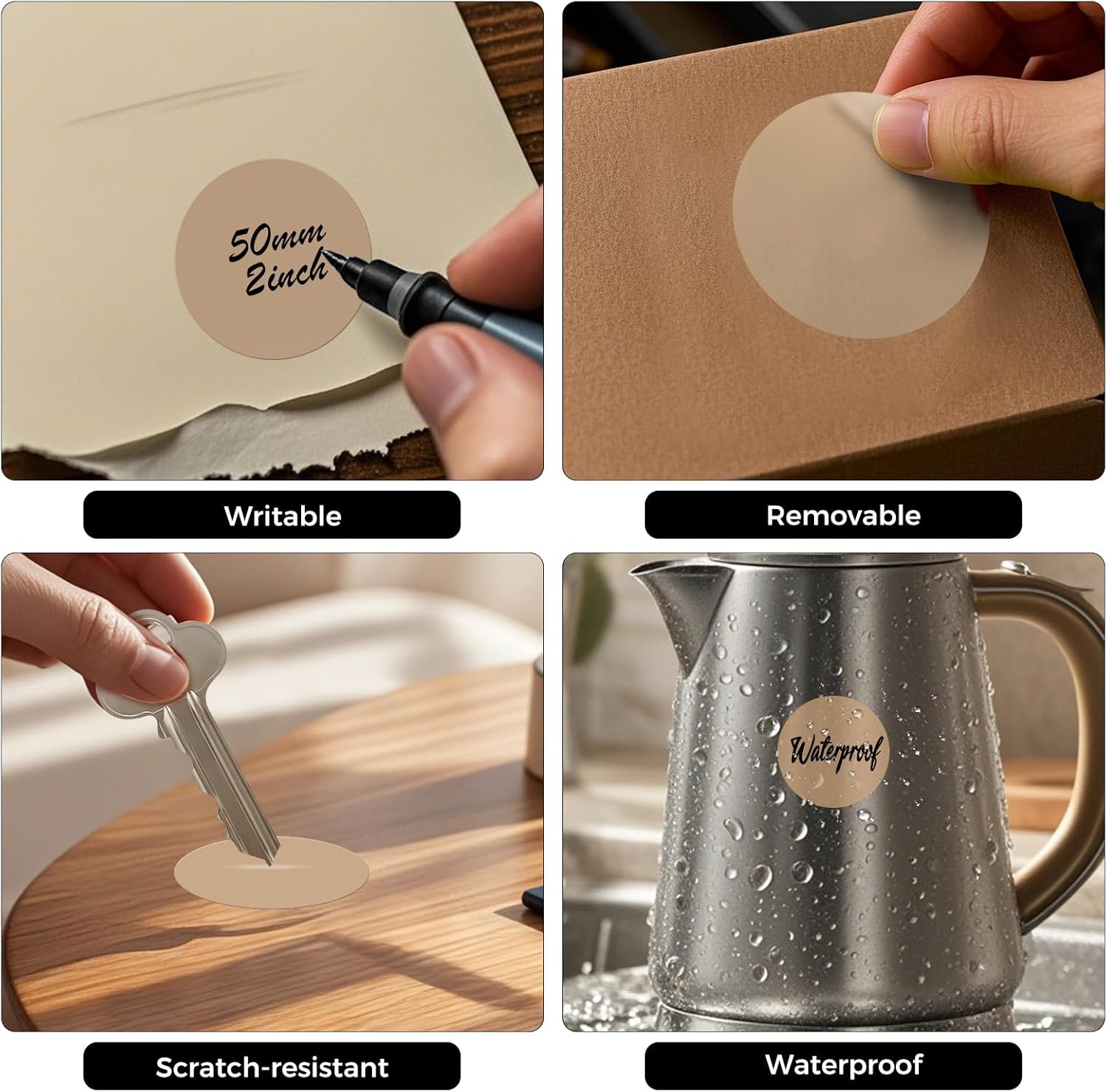 500 PCS Circle Dots Stickers 2 Inch Vinyl Kraft Round Labels Removable Waterproof Color Coding Sticker Roll for Office Inventory Garage Yard Sale Tag