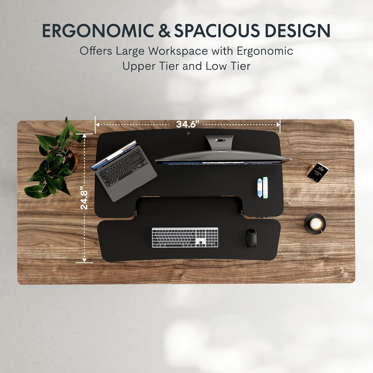 FLEXISPOT 35 inch Electric Standing Desk Converter, Motorized Stand up Desk Riser, Monitor and Laptop Workstation with Wide Keyboard Tray, Black