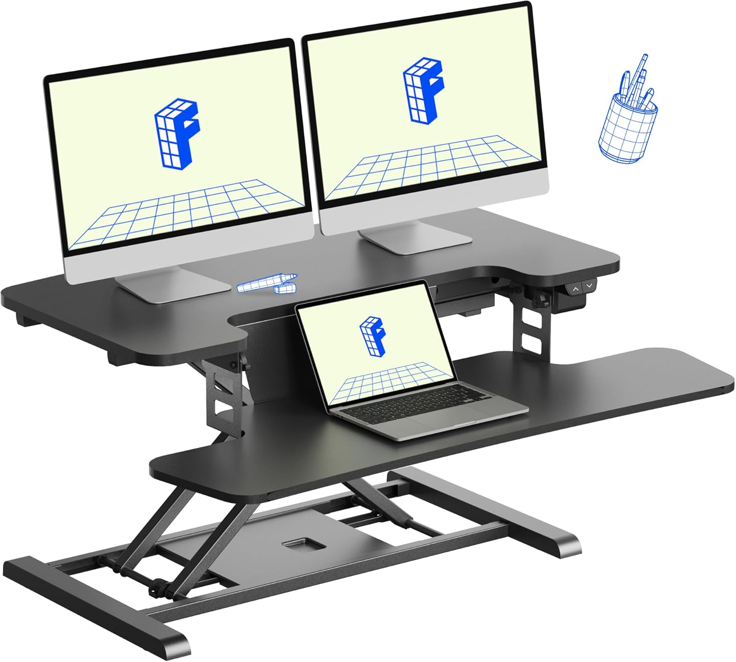 FLEXISPOT 32" Motorized Standing Desk Converter, Electric Stand up Desk Riser, Sit to Stand Dual Monitor and Laptop Workstation with Wide Keyboard Tray, Black