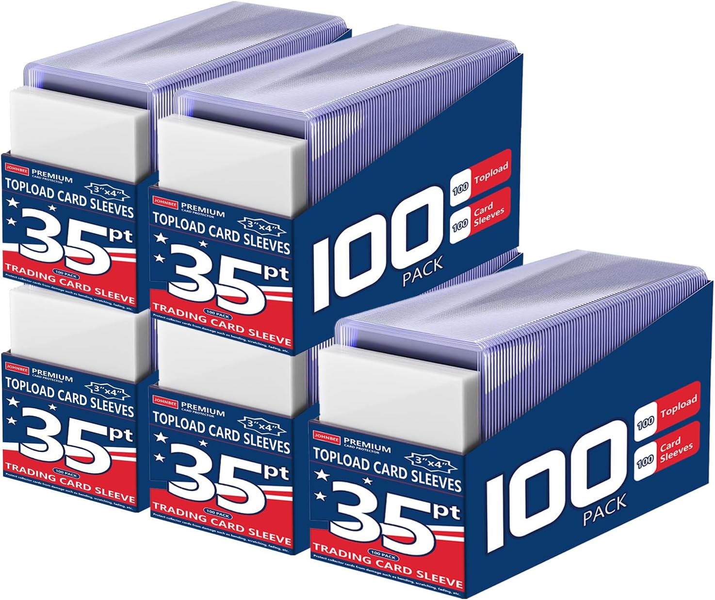 JohnBee Card Sleeves - 3"x4" Hard Plastic Top Loaders for Cards - Trading Card Sleeve & Baseball Card Holder - Premium Topload Ablum Photocard Holder for Sports, Game & Kpop Cards (500Soft+500Hard)