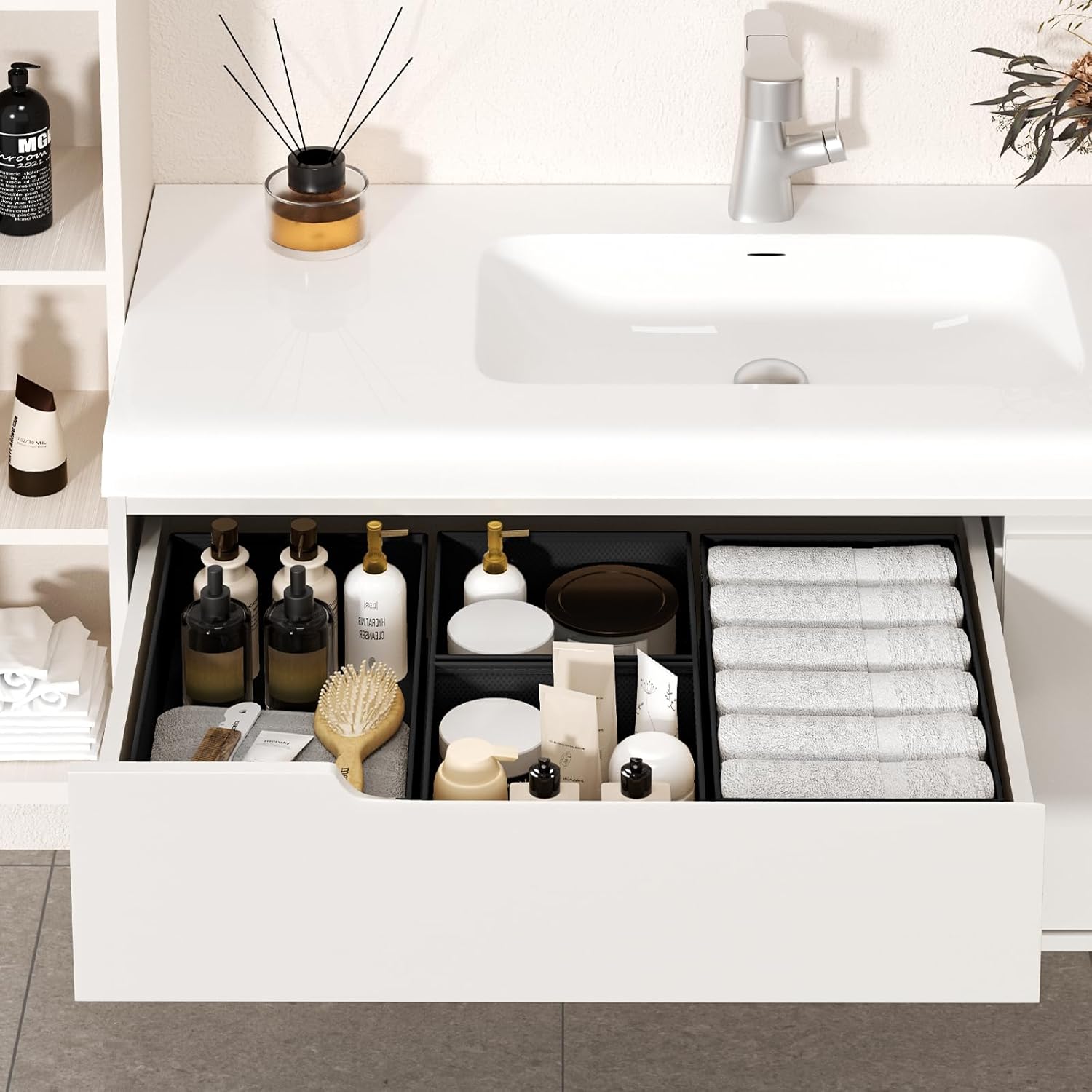 - Stable Structure:The dresser drawer organizers is made of high-quality non-woven fabric, with reinforced lining and professional sewing technology to ensure that each bathroom drawer organizer is firm and not easy to deform, and can keep the interior of the closet storage drawers neat and tidy for a long time, suitable for frequent daily use