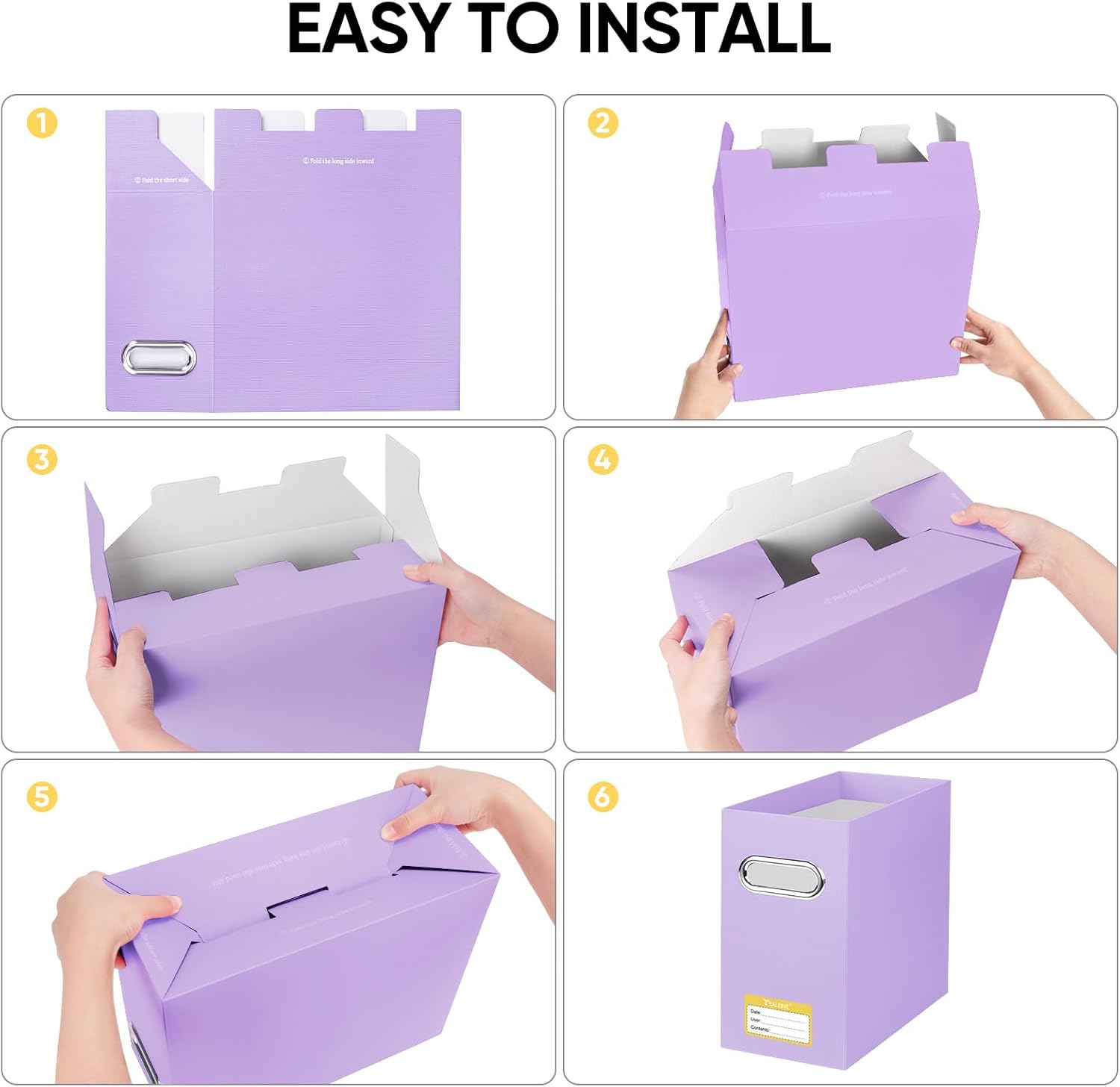 BALEINE File Organizer Box, Cardboard File Folder Organizer with Handle for Letter Size, Portable Collapsible Hanging Filing Box for Home Office Document Storage (4 Pack, Lavender)