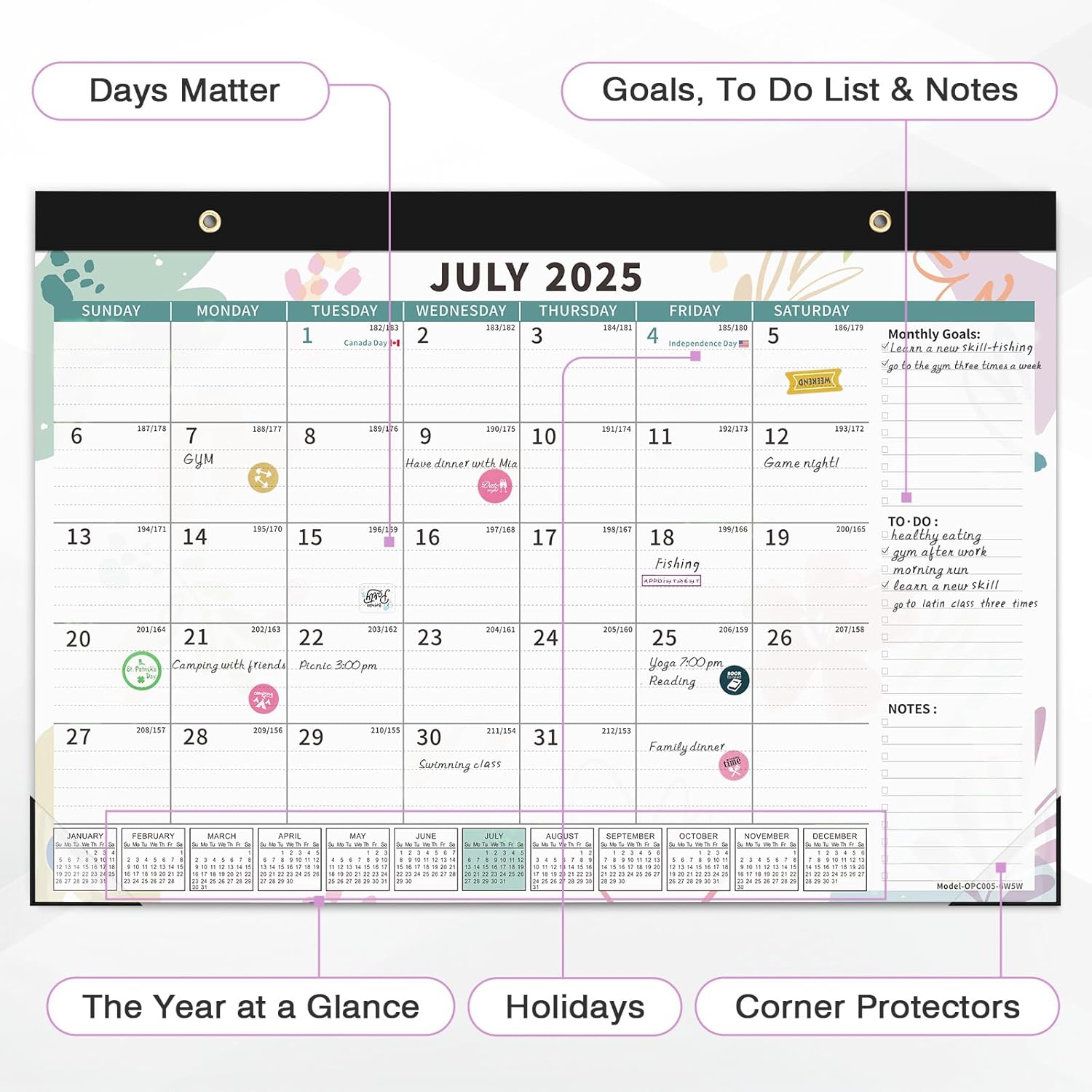 Ospelelf Desk Calendar 2025-2026, Magnetic Fridge Wall Calendar, 18 Month Monthly Large 17" X 12" Calendar Planner with Plastic Cover, July 2025 to December 2026 Floral