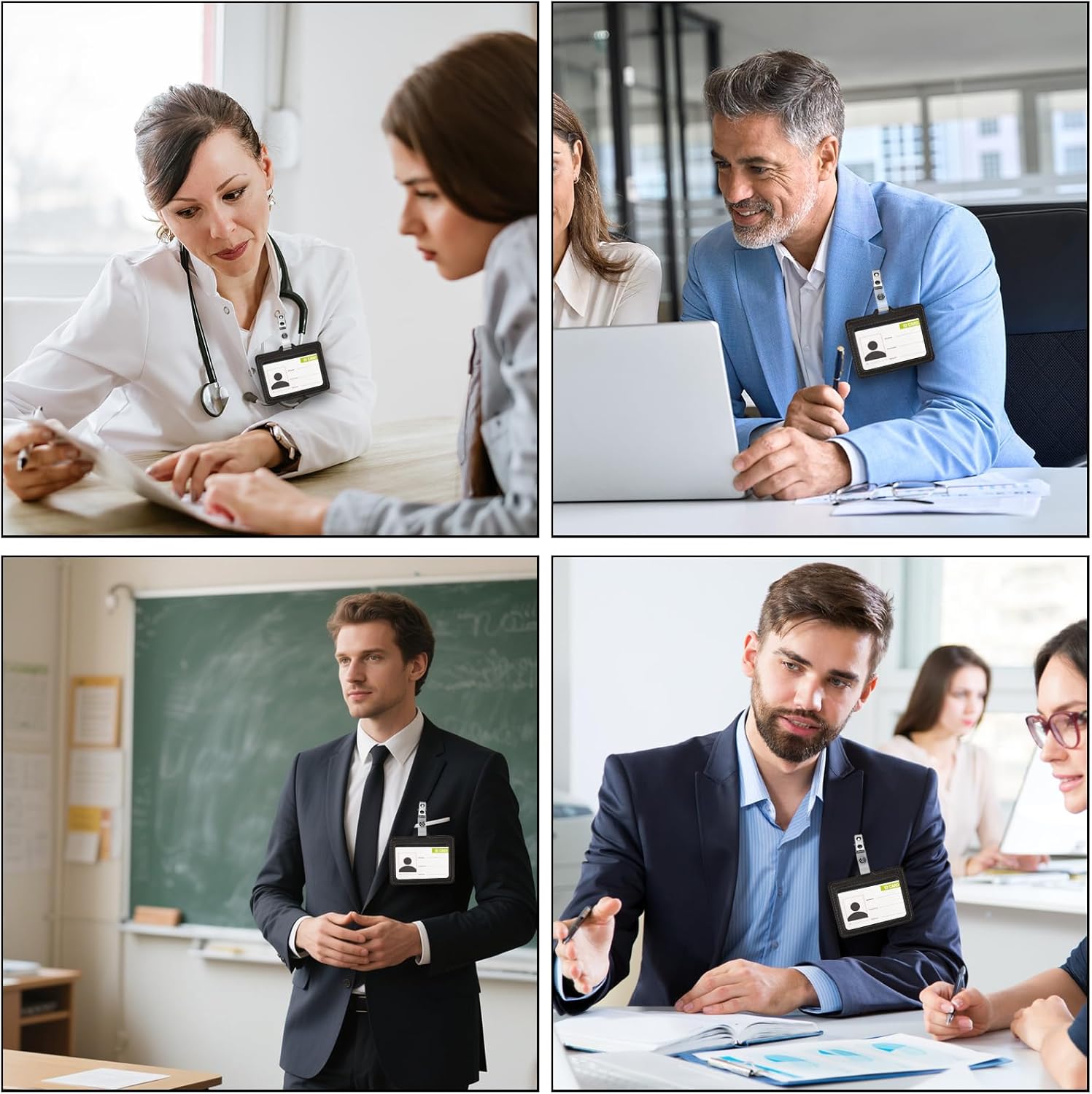 - Ldeal Ddesign:the ID badge clips can be rotated 360 degrees, flexible for using,the metal clips have 2 holes that are pre punched, which help you to hang or clip the holder in a variety of ways.They are appropriate for nurses, doctors, teachers, students, polices, office workers and so on.