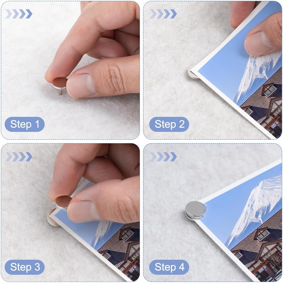 - 【Easy to Use】 You just push the pins into the wall with your hands, next position your photo, poster etc. that you want to hang, then hang your item by attaching the magnet to the outside