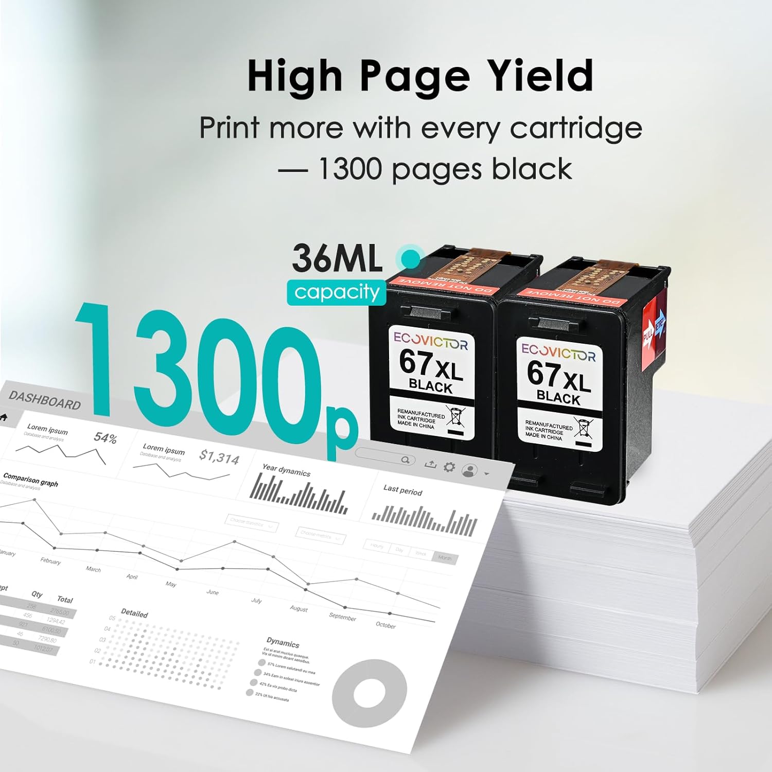 - Vivid, Professional Results: Formulated with premium-quality ink, our printer ink hp 67 replacement for hp ink 67xl black delivers crisp, clear text and rich, vibrant images. EcoVictor 67xl ink cartridge for hp black ink 67 is perfect for everyday documents, schoolwork, creative projects, and photos—fade-resistant and smudge-proof.