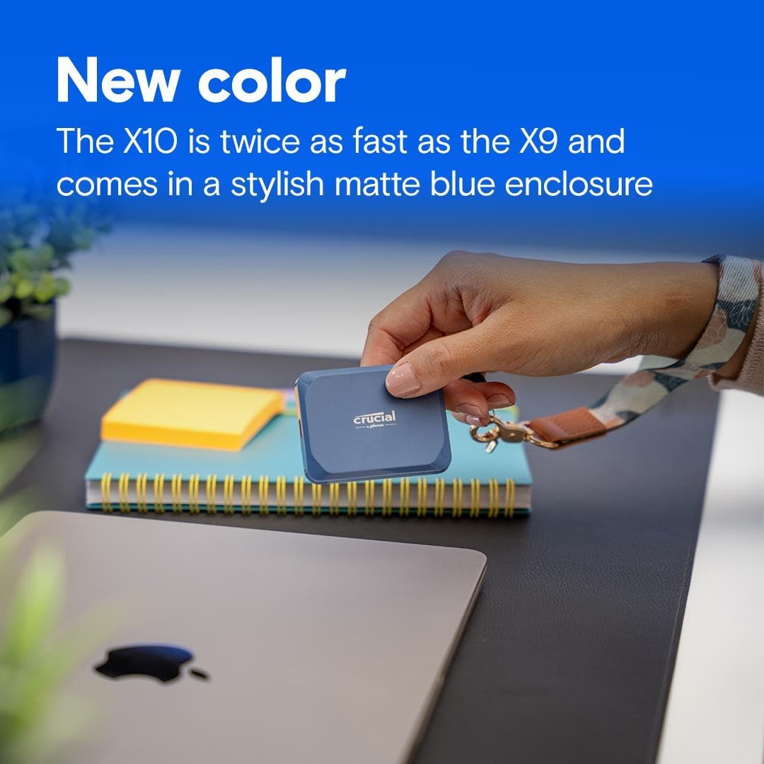 Crucial X10 1TB Portable SSD, Up to 2,100MB/s, USB 3.2 USB-C, External Solid State Drive, Compatible with Windows, Mac & Android, Durable Storage for Games, Photos & Files, Blue - CT1000X10SSD9-02