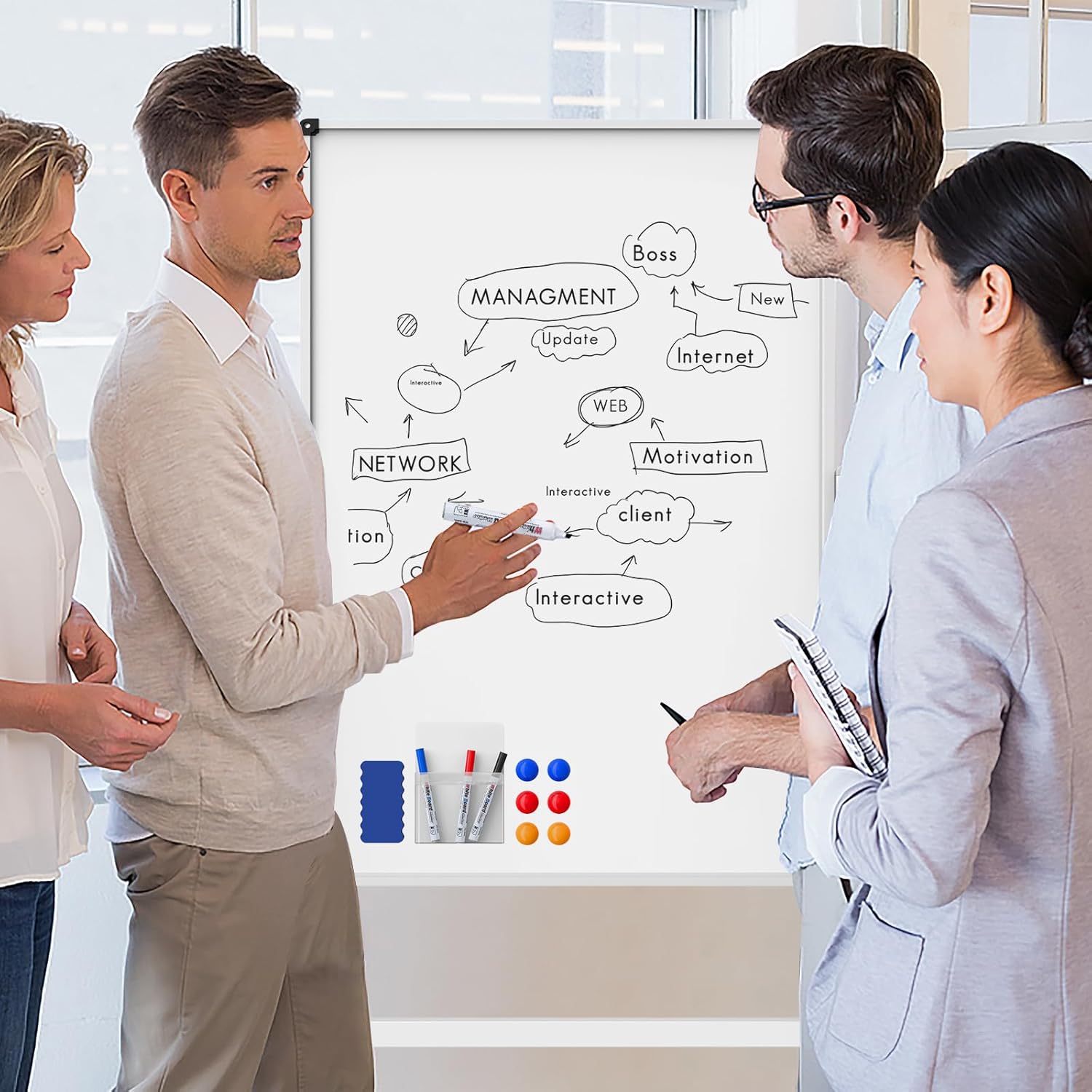 - Easy Assembly, Suitable for Any Space: Clear instructions and well-designed parts ensure quick and easy setup, usually within 5 to 10 minutes. Suitable for classrooms, offices, or homes, the 48x32 inch portable whiteboard on wheels offers ample writing space without occupying much room. Comes with pen tray, markers, eraser, and magnets—ready to use right away.