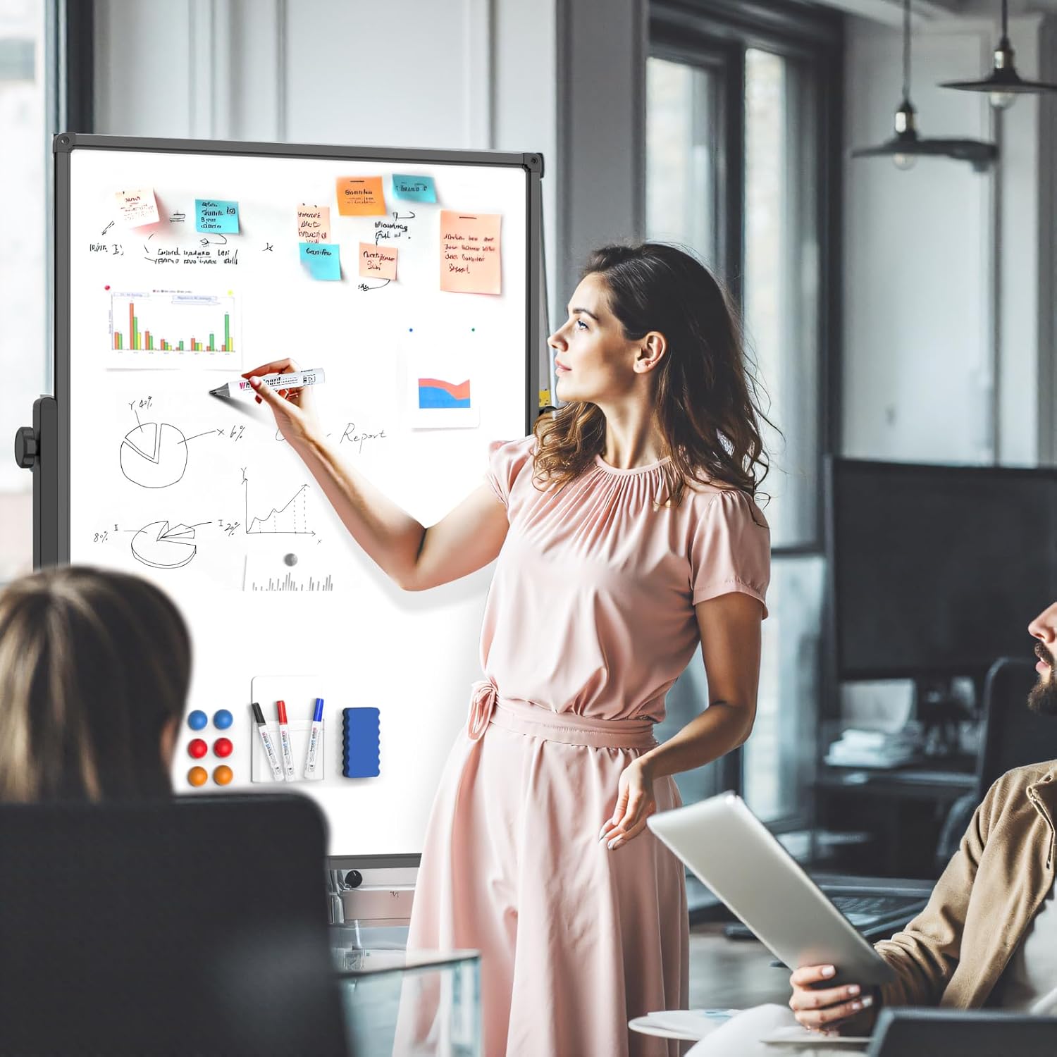 - Whiteboard with Stand, Easy Setup This 48x32 inch whiteboard with stand provides ample writing space while fitting comfortably in any room. Assembly takes just 5–10 minutes with clear instructions. Ideal for classrooms, offices, or home use. Includes pen tray, markers, magnets, and eraser—ready to start writing right away.