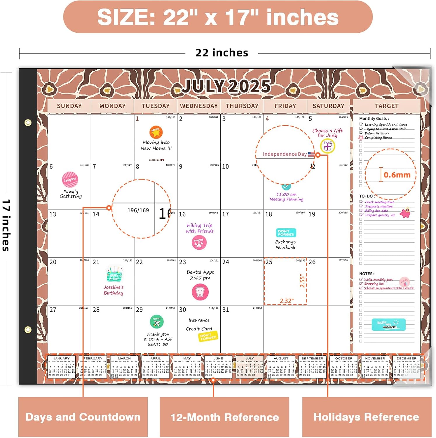 Ospelelf Desk Calendar 2025-2026 Large 22'' x 17'', 2025 Monthly Desktop Calendar, 18 Month Family Calendar, Use July 2025 - Dec 2026