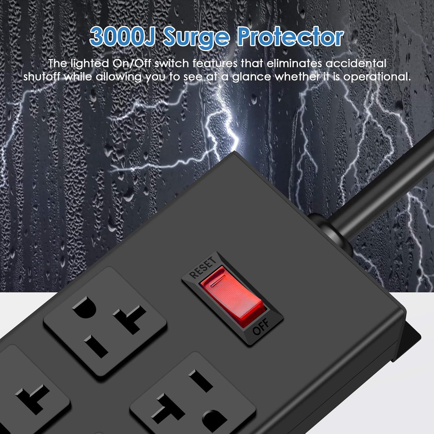 - Heavy Duty Power Strip 20A: Made of rugged metal shell that offers great impact resistant performance, high wear resistance heavy duty power cord protects circuits from fire, impact or rust, and prevents dents and scratches.
