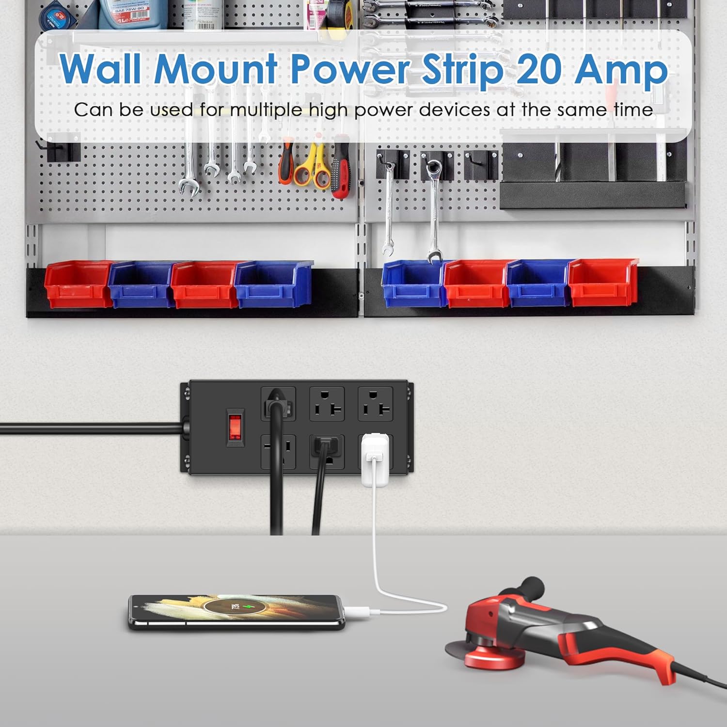 - 20a power strip to be securely installed in various applications, industrial, workshops, shop, offices and workbenches, etc. We will provide you with a quality shopping experience, there are 1 year replacement time, If you have any questions please ask us for support.