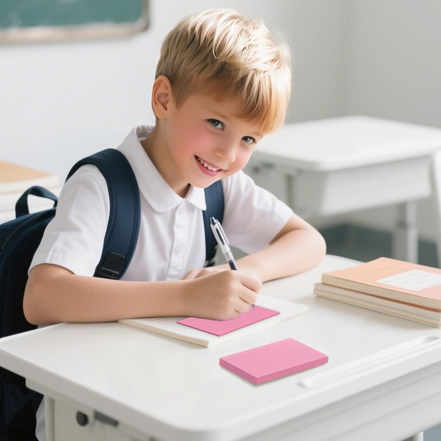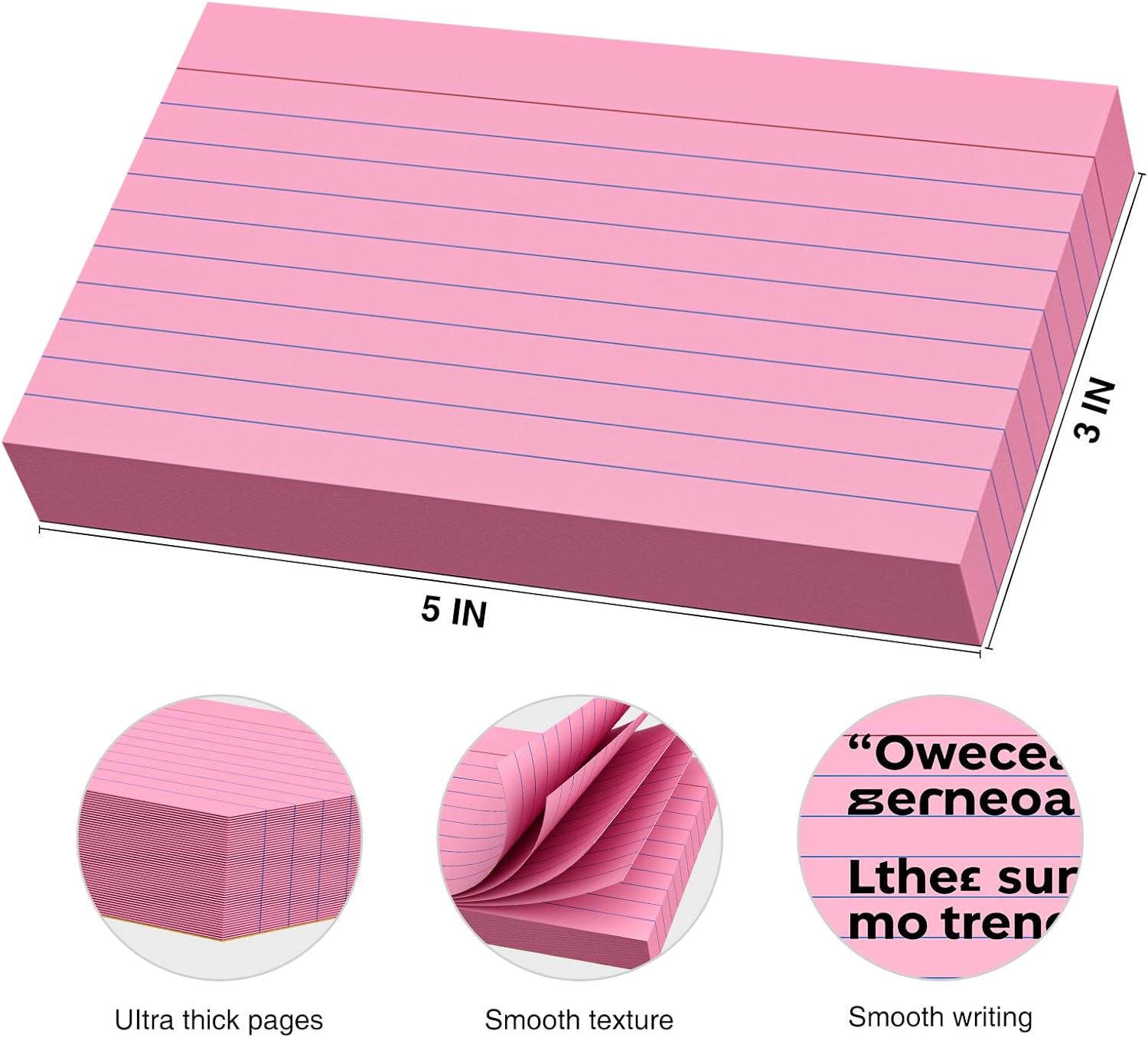 250 Count Index Cards 3x5 Inch 180gsm, Heavy Weight Pink Color Flash Card (50 Sheets Each), Note Taking for Students, Teachers, Professionals, Study Note Cards for Office Home School
