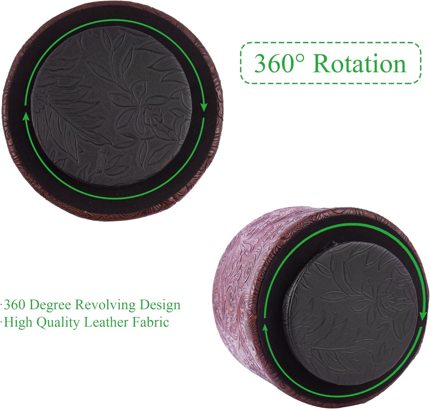lizimandu Round Leather Art Supply Organizer,Remote Control Holder,360 Degree Spinning,Multi-Functional Pencil Holder,4 Compartments Desktop Stationary Organizer(1-Carved Red)