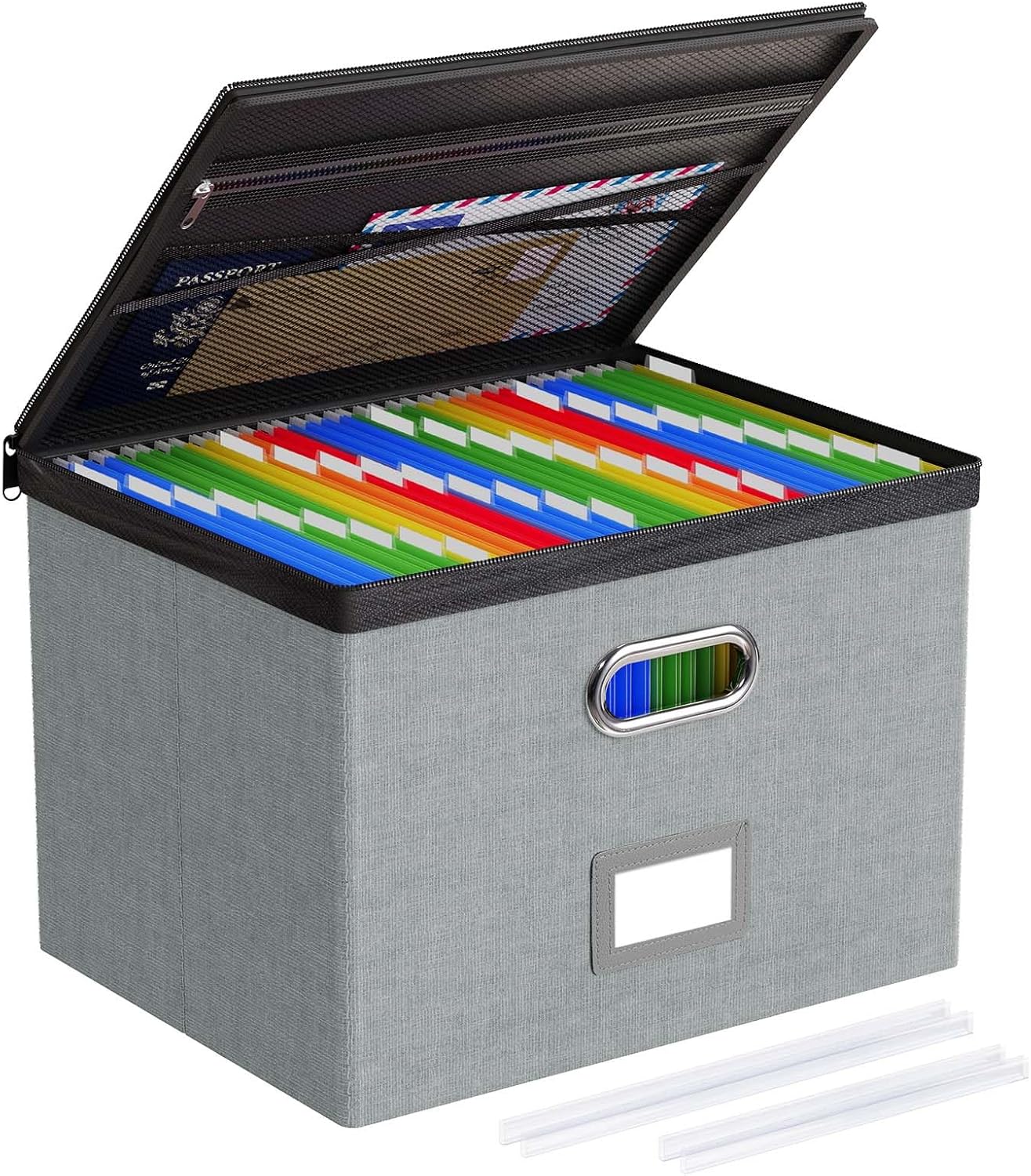 - Protection & Privacy: The hanging file organizer with lid protects labels from distortion and tearing, while the double zippers offers dust protection, privacy, and security, ensuring a fully enclosed top with hidden folder hangers. When the lid is opened, the folders remain securely on the rails without falling off.