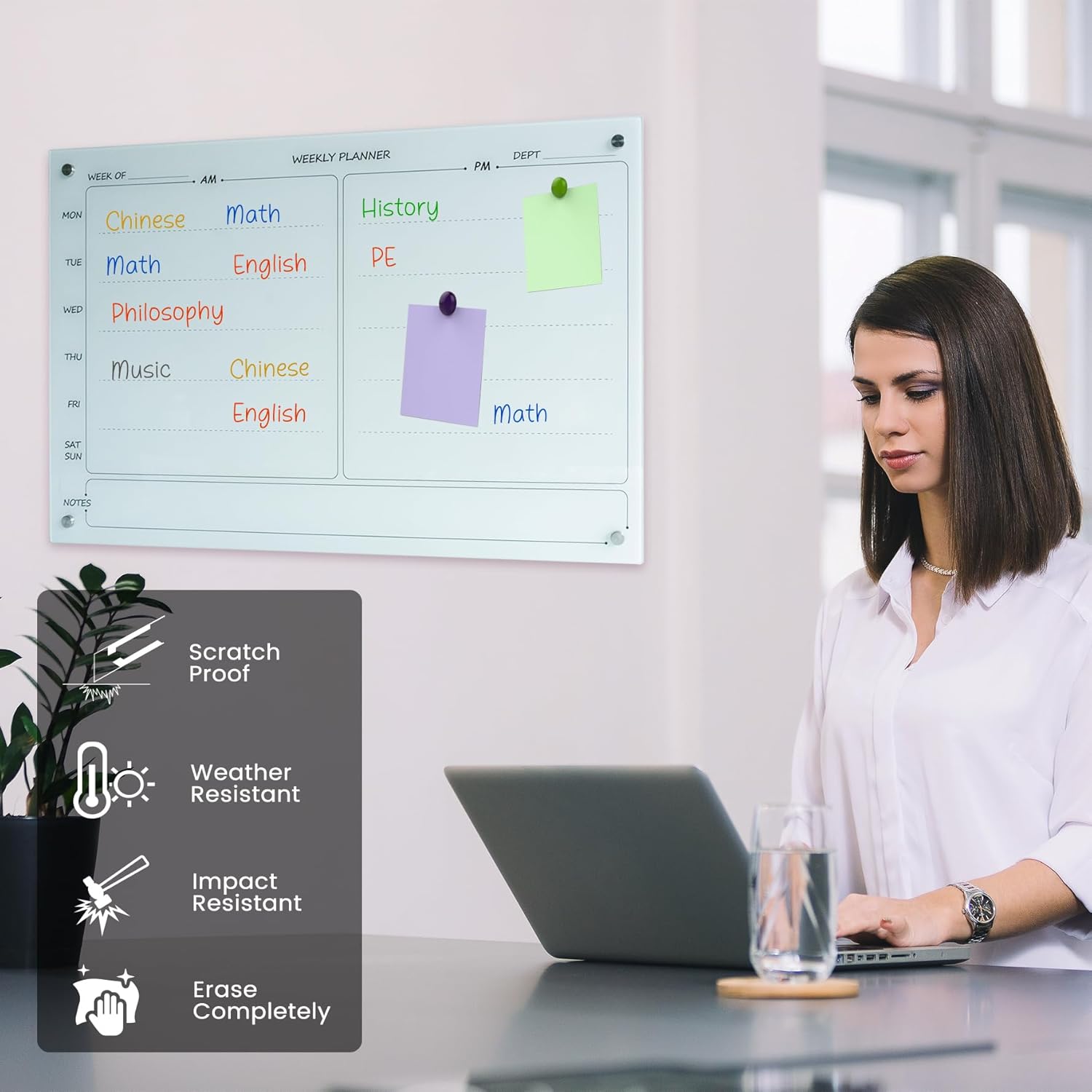 Magnetic Planner Writeboard 24"X36" Weekly Glass Calendar Ultra White Glassboard Premium Tempered Dry Erase Boards Frameless Wall Mounted (Ultra White)