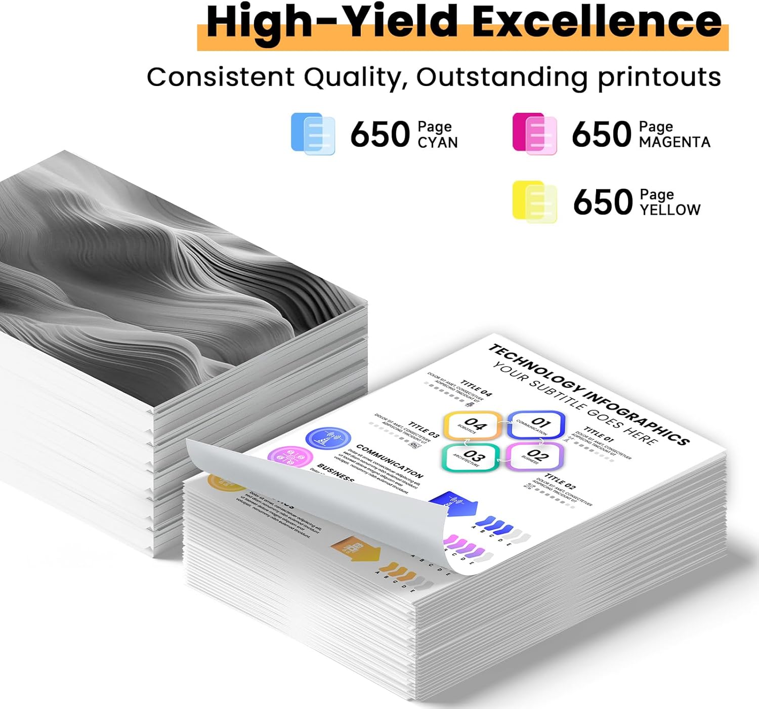 - High Page Yield: Delivers up to 650 pages per color cartridges (based on 5% coverage on A4/Letter paper). Ideal for cost-effective, long-lasting printing