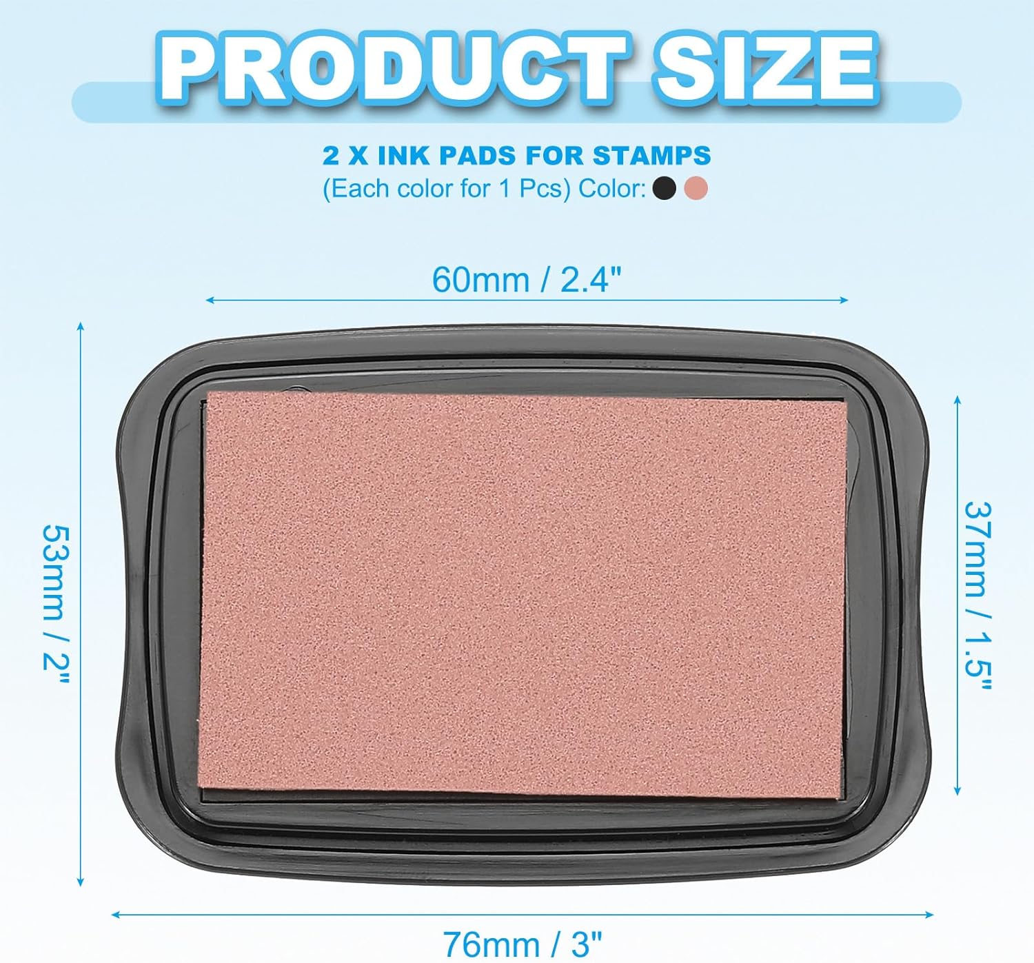 - Color: Rose Red, Black; Material: Sponge, Plastic; Ink Pad Size: 60 x 37mm / 2.4 x 1.5 inch(L*W); Overall Size: 76 x 53 x 18mm / 3 x 2 x 0.7 inch(L*W*T); Packing List: 2 x Ink Pads for Stamps