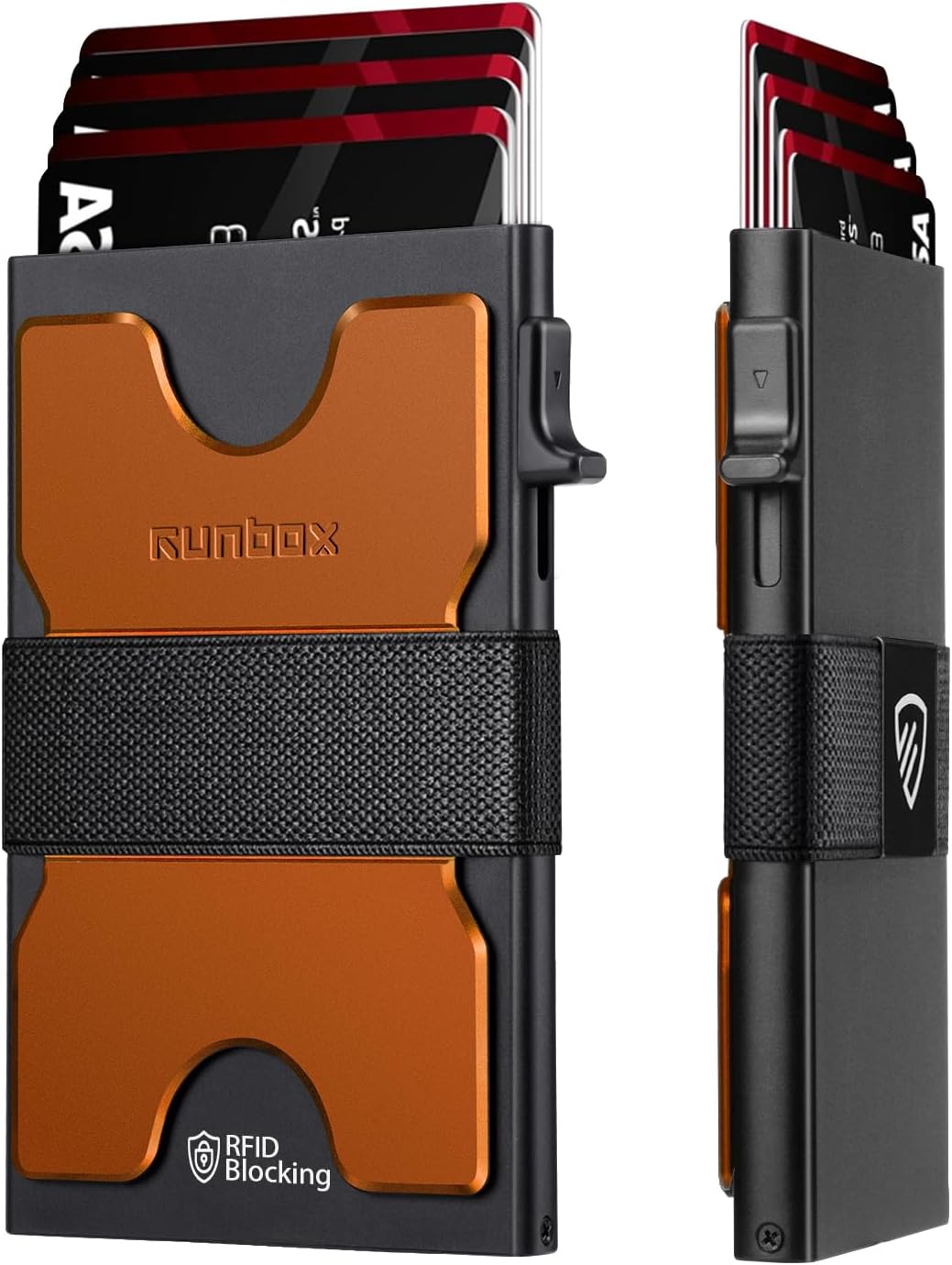 - Quick Access & Expandable Capacity (Holds 1-12 Cards): Experience effortless card access with our patented pop-up button mechanism – press to instantly eject cards. The main aluminum card holder compartment holds 4-6 cards(depending on embossed designs), while the expandable metal backplate adds 6-8 extra slots. *Total capacity varies with card thickness