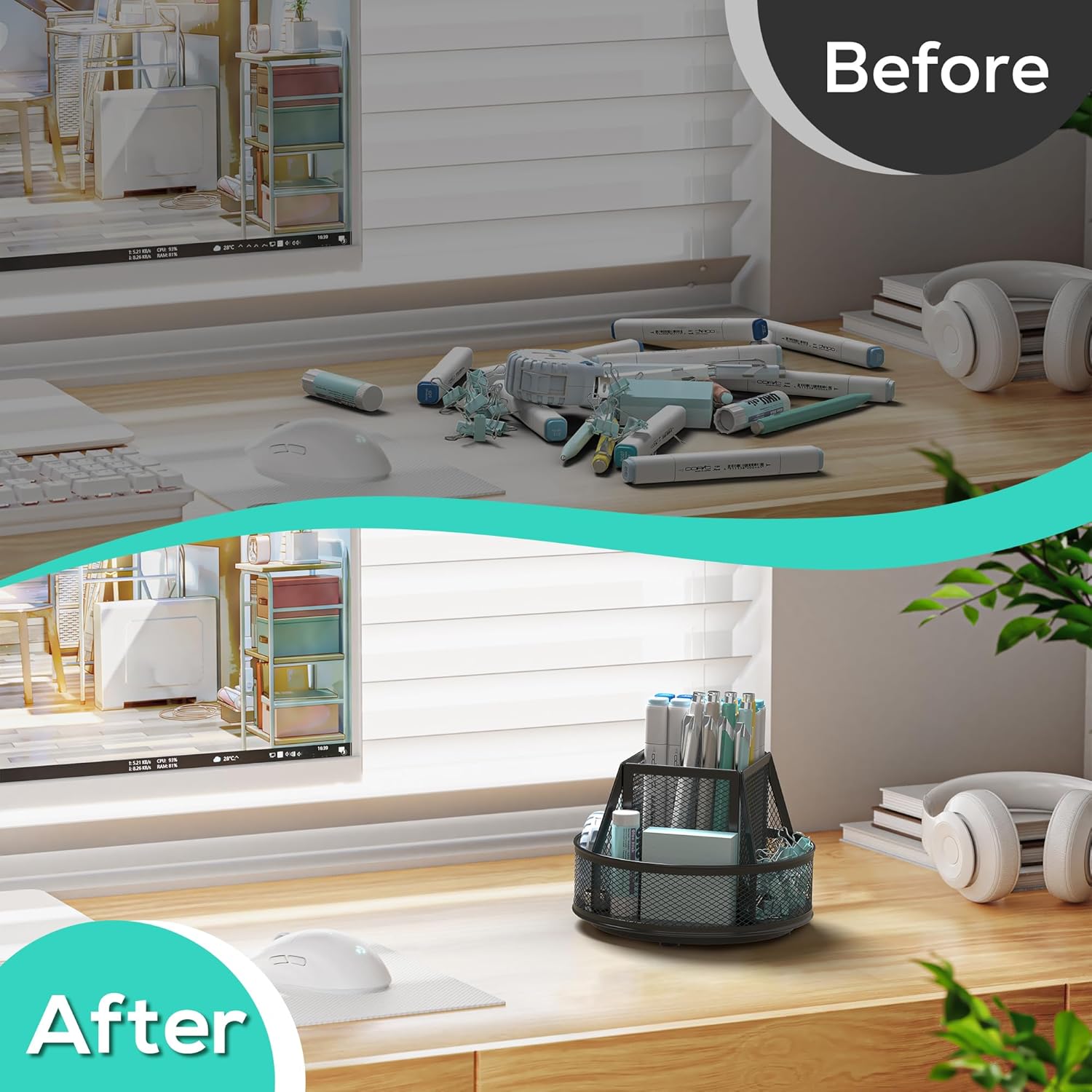 - Convenient Pen Holder for Desk: The built-in rotating pencil holder (also serves as a pen holder) allows for easy access to your writing instruments. No more searching through drawers or clutter for that perfect pen or pencil. It's a must-have desk accessory & workspace organizer for any desk