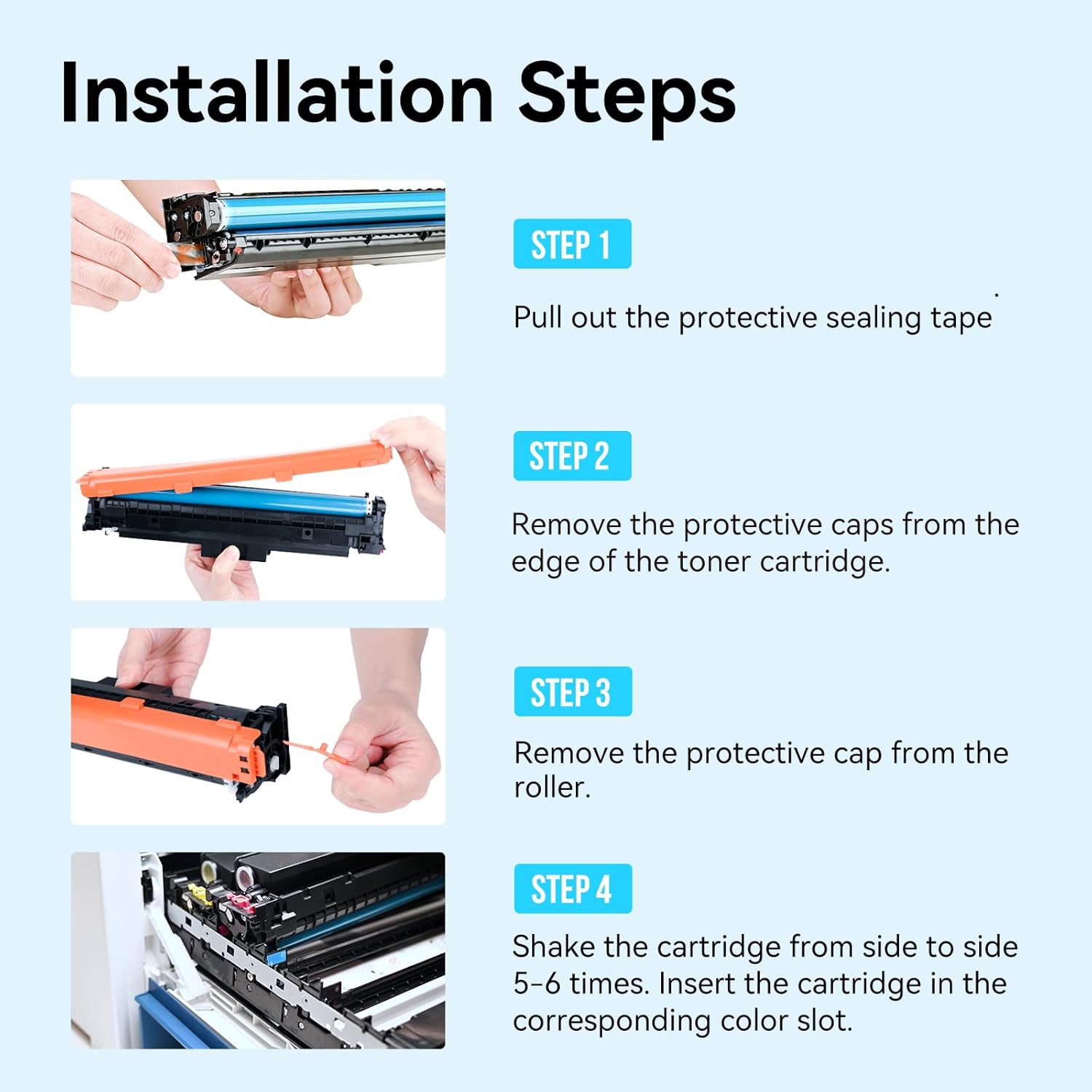 - 【Package Contains】: Replacement for HP 210A Toner Cartridges 4 Pack ( 1 x 210A Black toner cartridge-W2100A, 1 x 210A Cyan toner cartridge-W2101A, 1 x 210A Magenta toner cartridge-W2103A, 1 x 210A Yellow toner cartridge-W2102A)