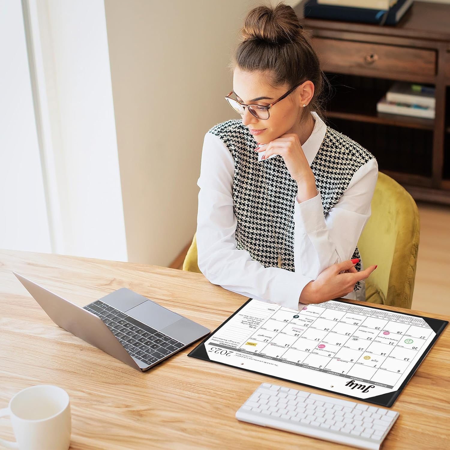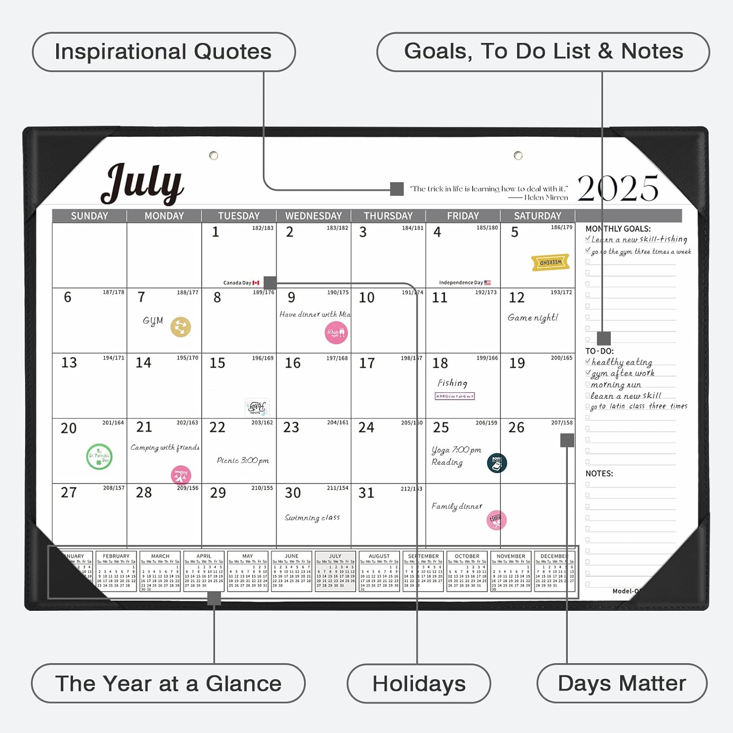 Ospelelf Desk Calendar 2025-2026 Wall Monthly Planner 12"x17" Leather Pad with Protective Cover 18 Months July 2025 to December 2026 Black