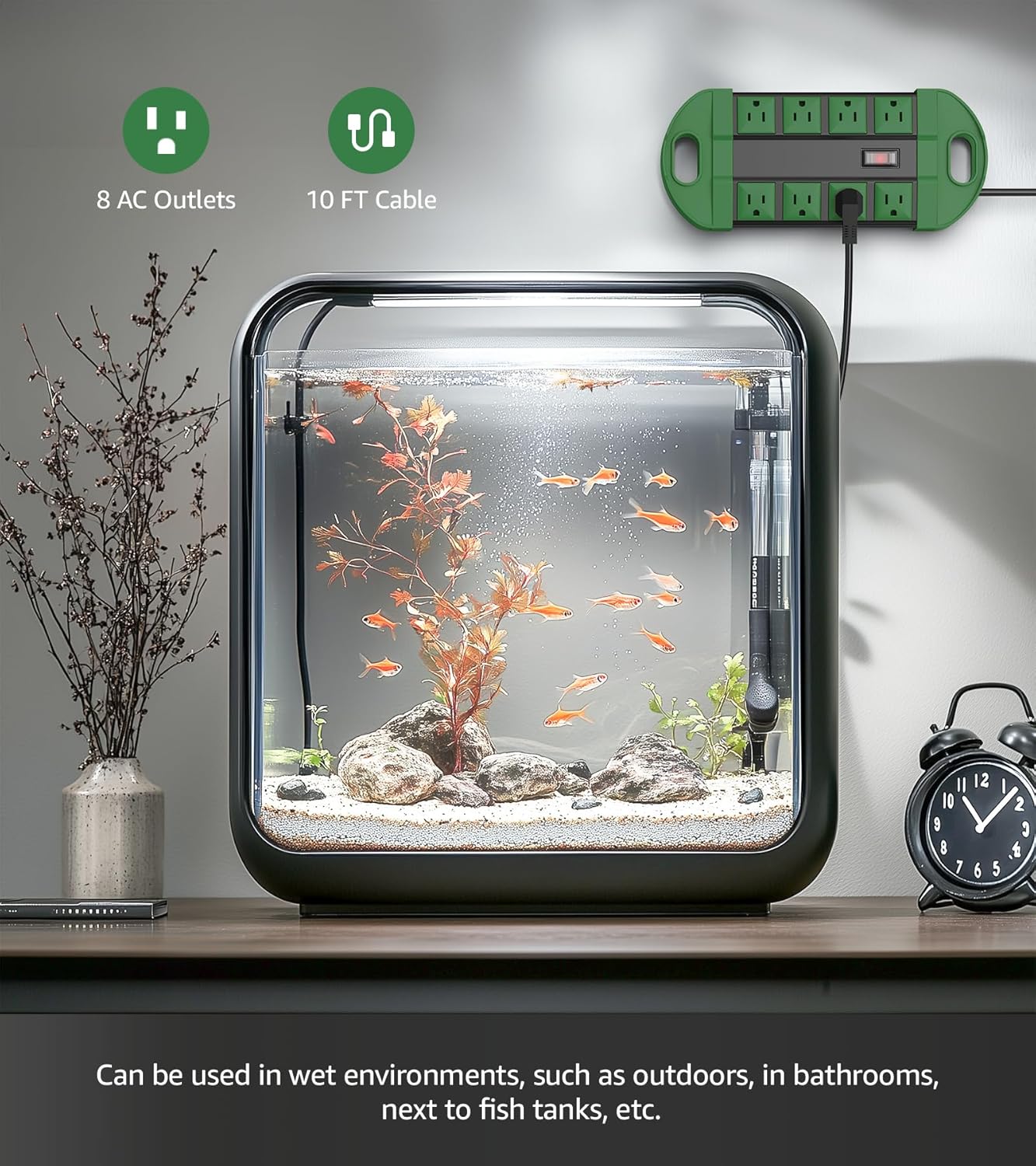 CCCEI Outdoor Power Strip Weatherproof with 8 Plug, Waterproof Extension Cord with Multiple Outlets, Christmas Exterior Garden Yard Surge Protector 10FT, Green.