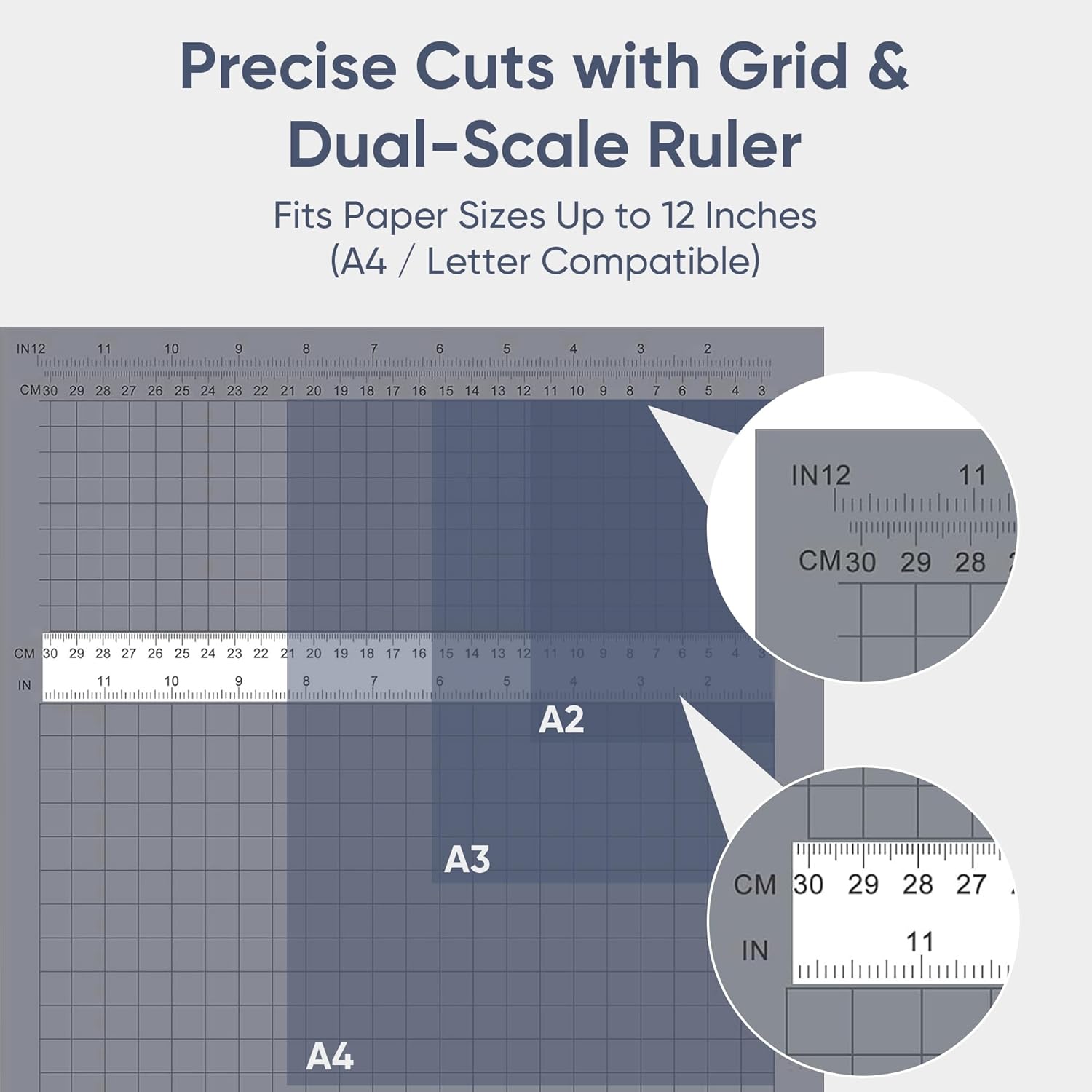 - 【Precision Cutting】Engineered for accuracy, this paper cutter guillotine style features dual centimeter/inch scales and an alignment grid for flawless cuts. Papercutter delivers sharp, straight edges on every use. Handles sheets up to 12 inches long with ease, making it a must-have for home, offices and classrooms