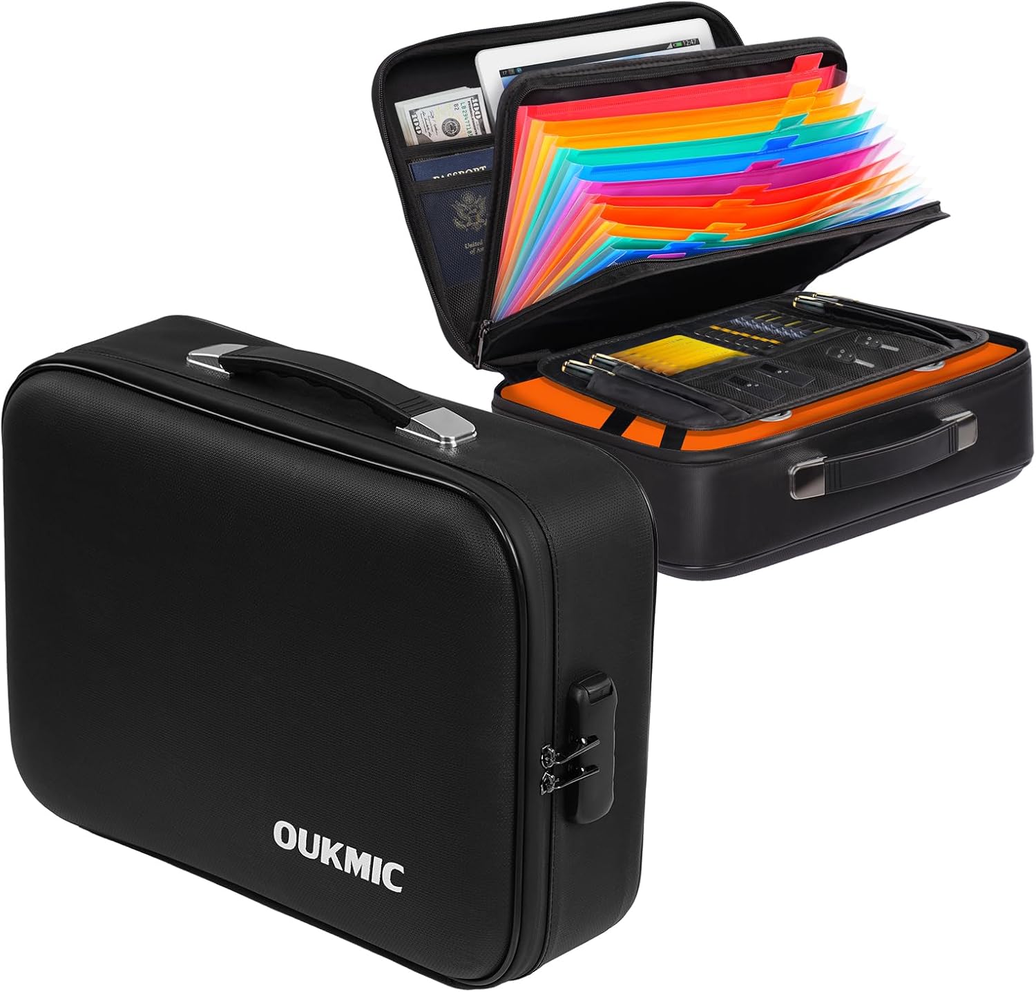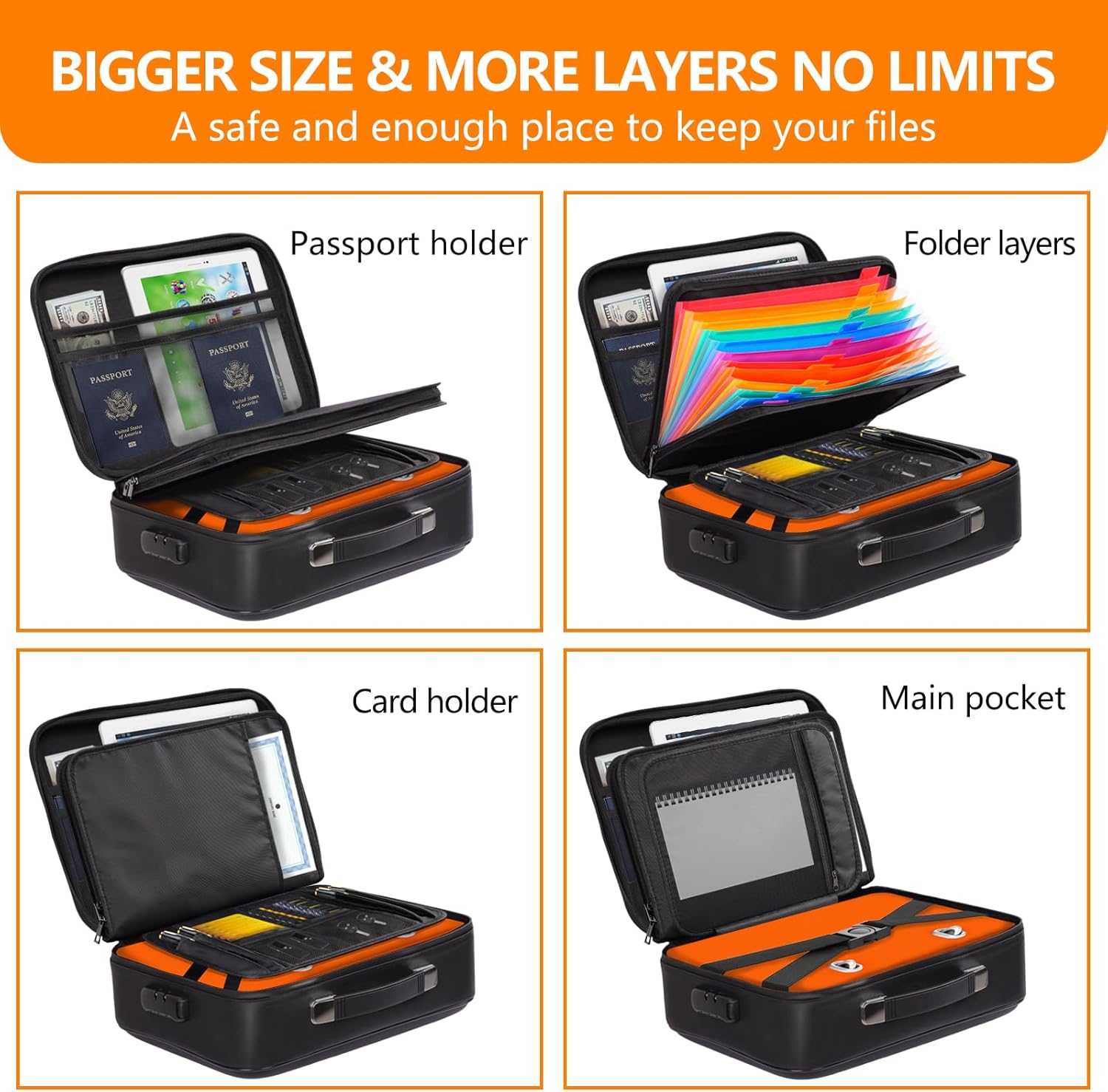 - Large Capacity Fireproof Document Bag: Size : 16.14 inch× 12.01 inch × 5.71 inch, Larger size than most fireproof file boxes on the market. Multi-layer built-in compartments, tabbed folders, card slots & mesh pockets organize documents, passports, money, U disk, pens, cards, certificates, and laptops,ideal for daily filing/storage