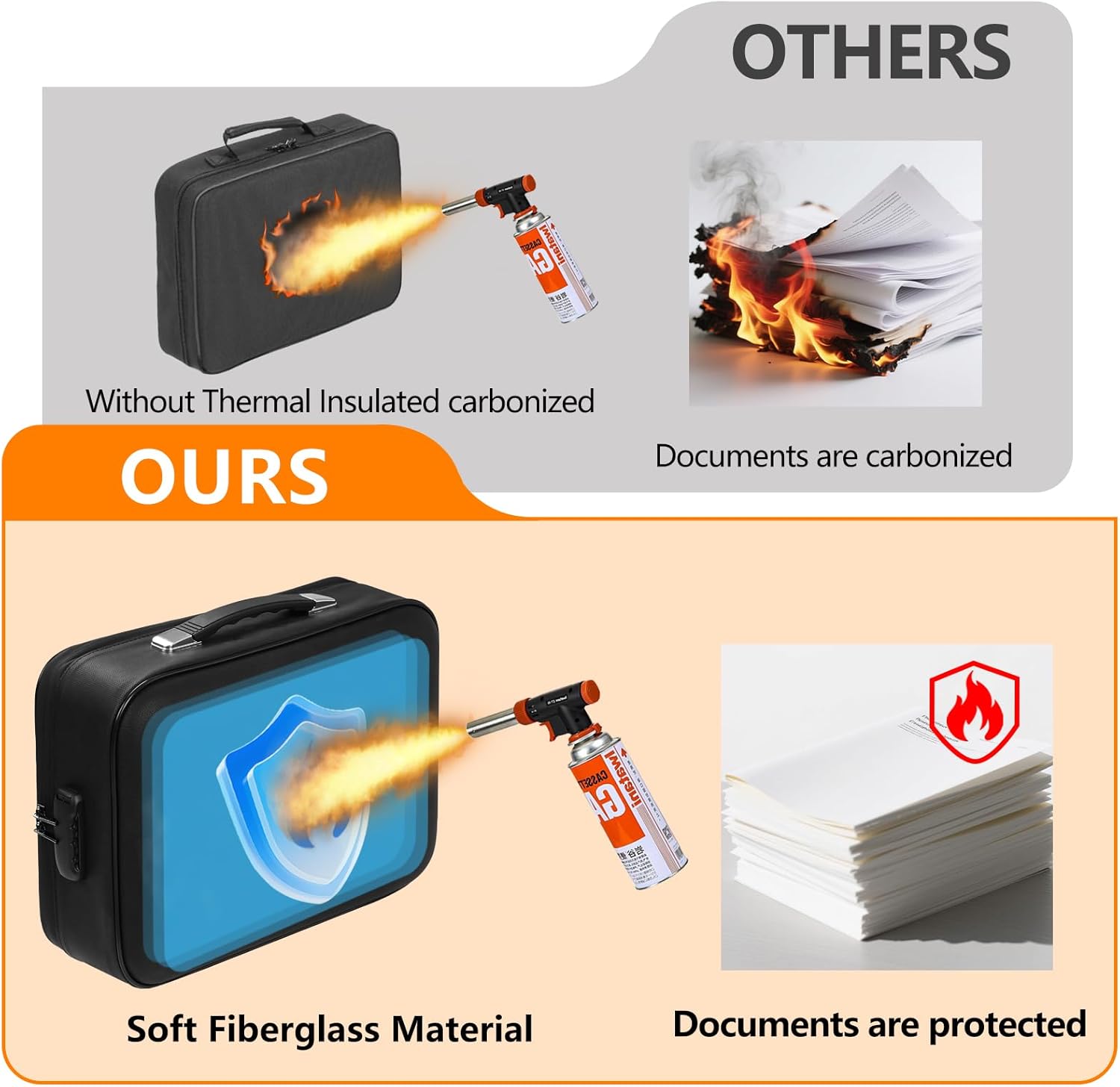 - Sturdy Hard-Shell Fireproof Document Box: The safe bag is designed with upgraded hard shell structure a breakthrough design to combine fireproof material and hard-shell material makes the fireproof document box, which offers excellent durability and compression resistance to defend external shocks, ensuring the safety of your important documents