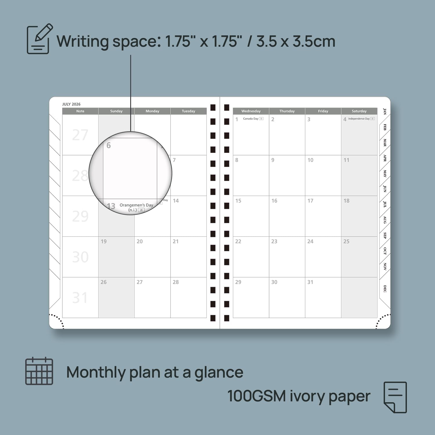 - EXTRA PAGES - This 2026 daily planner also contains Yearly Overview" Page + Holiday & Calendar" Page + Contact Pages + Password Page + Dotted Notes Pages for jotting down your ideas, thoughts or any other happy things in detail.