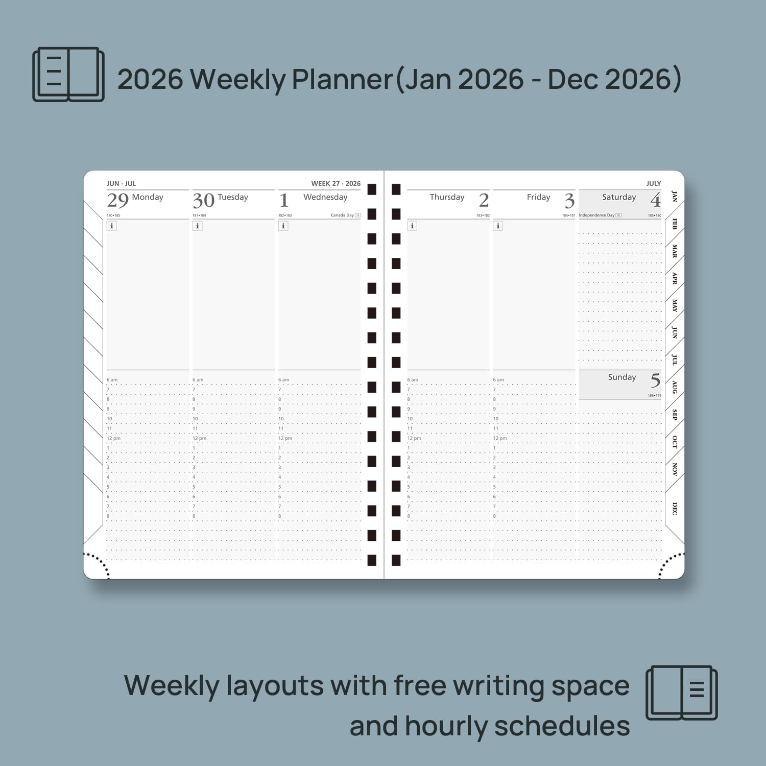 - COLUMN FORMAT:Lay flat week-to-view on 2 pages, this weekly planner (Jan. 2026 - Dec. 2026) provides hourly scheduling from 6:00 AM to 8 PM and a spacious layout for everyday planning. Stay organized and on track with ease.