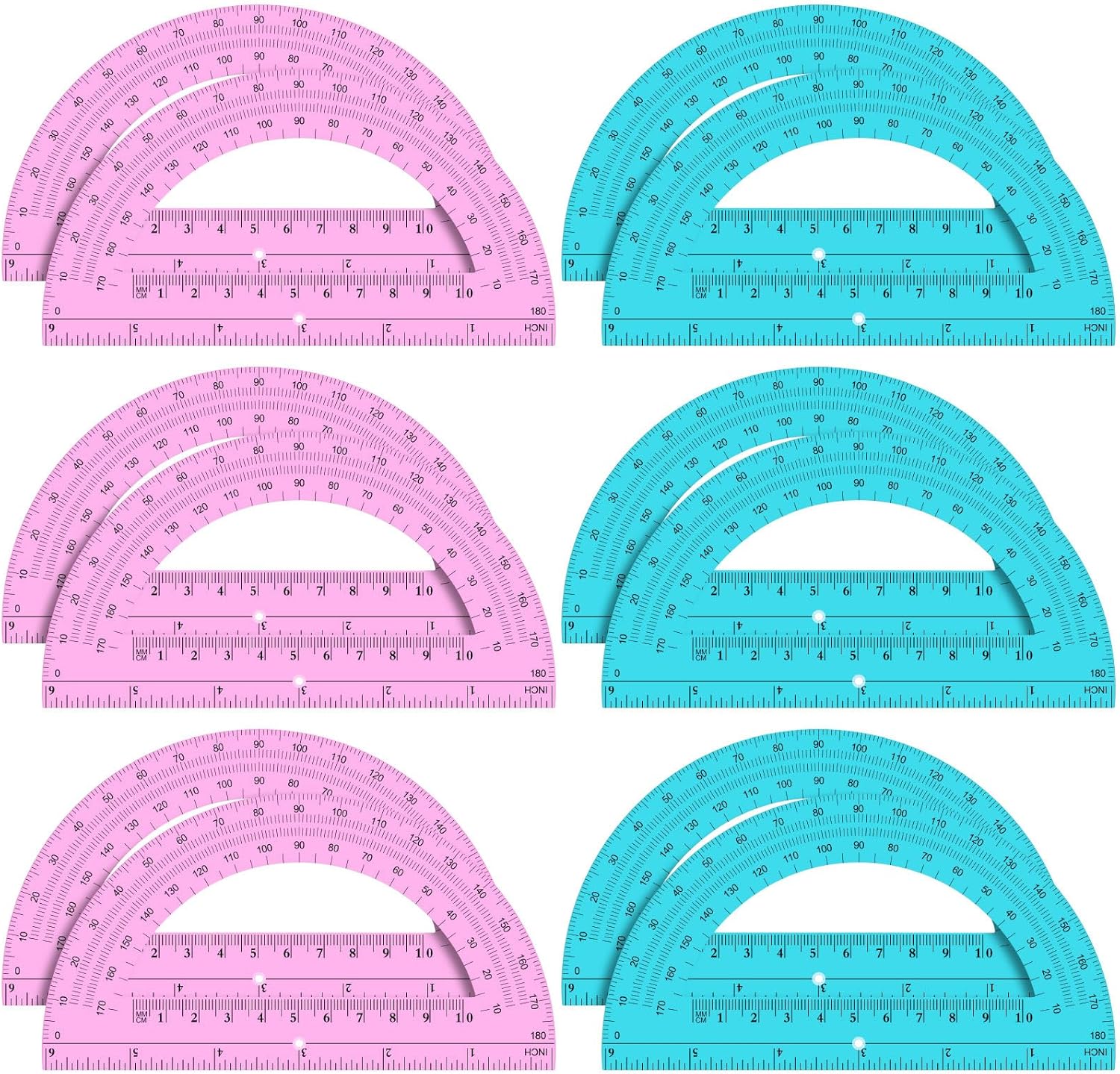 Ctosree 12 PCS Bulk Protractor - Plastic Translucent 180 Degrees 6 Inch Clear Math Protractor Set for Geometry, Angle Measurement, Office Stationery, Pink & Blue