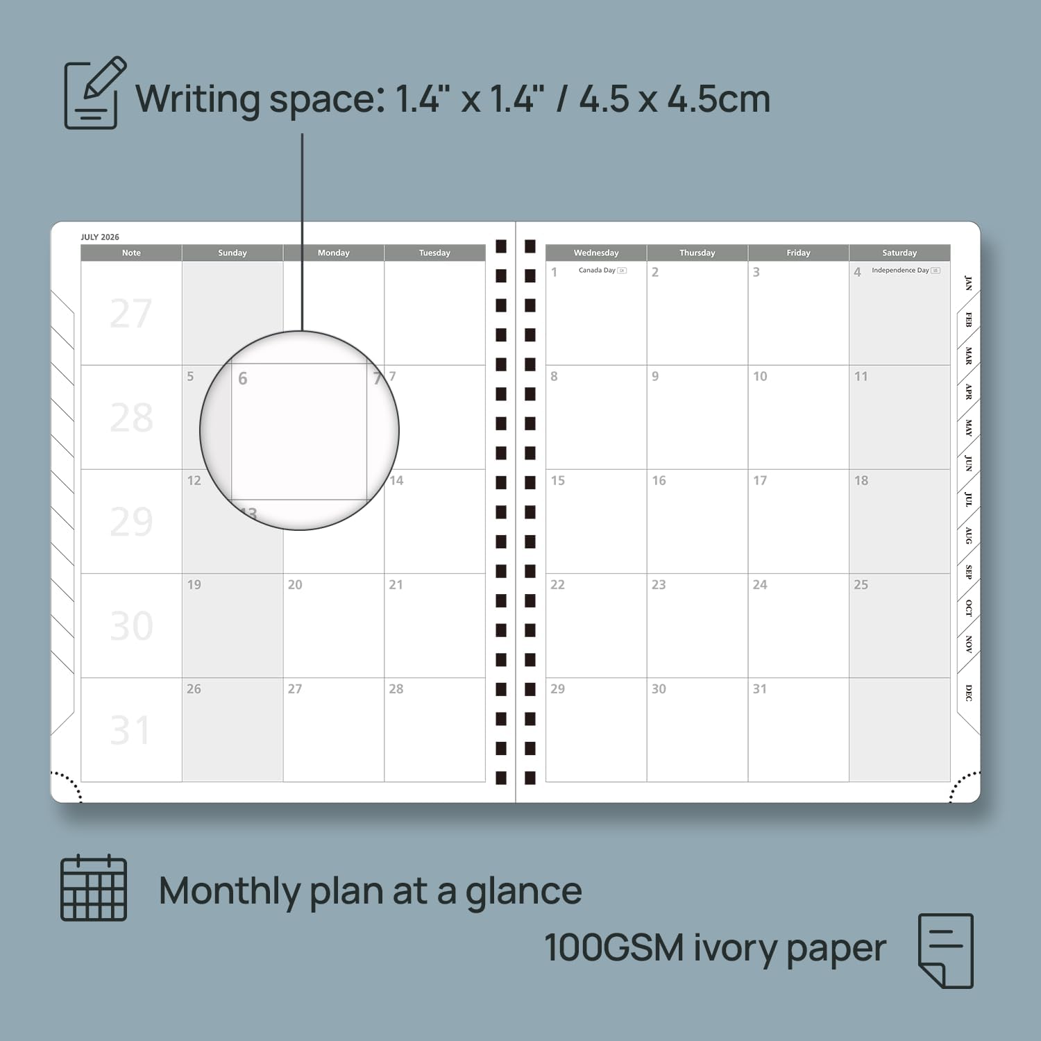 - EXTRA PAGES - This 2026 daily planner also contains Yearly Overview" Page + Holiday & Calendar" Page + Contact Pages + Password Page + Dotted Notes Pages for jotting down your ideas, thoughts or any other happy things in detail.