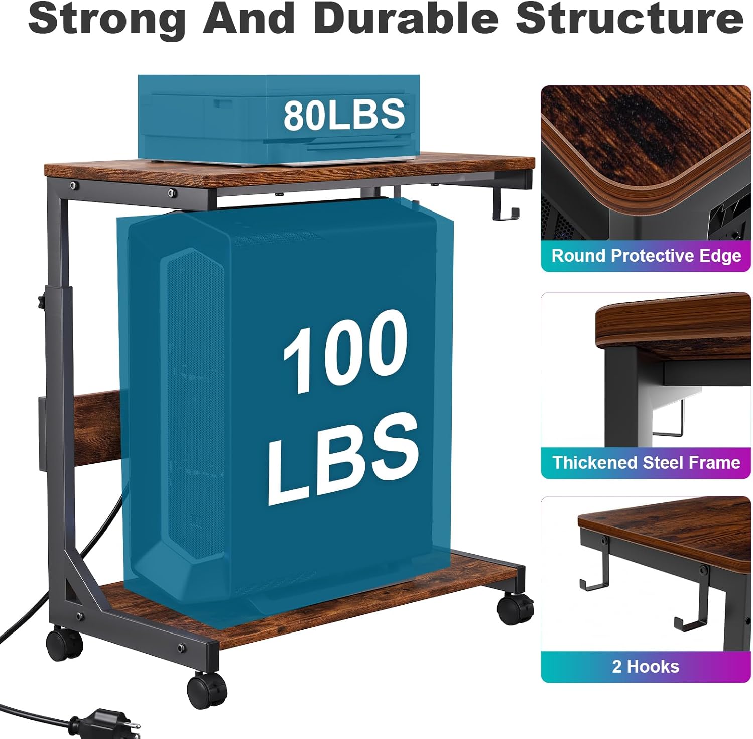- Pc Tower Stand With Charging Station: This Mobile PC Standing with dual 120V/12A outlets and dual USB ports can power your laptop, smartphone, printer, tablet or any electronic device. Great for keeping an organized workspace. Plus, the PC Tower Rack doubles as a side table to provide additional power for your desk lamp