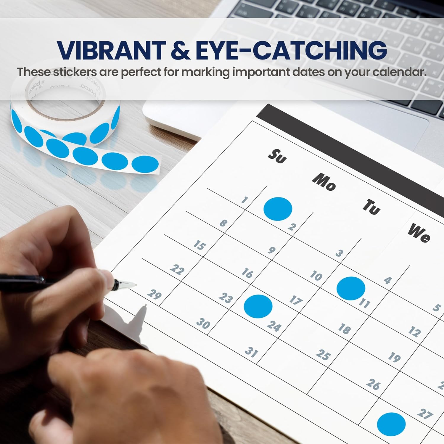 Perco Light Blue 1-Inch Round Circle Dot Sticker Labels with Removable Adhesive – 1,000 Labels/Roll – Versatile, Vibrant Colors, Reliable Hold, No Residue, Perforated for Convenient Use — Made in USA